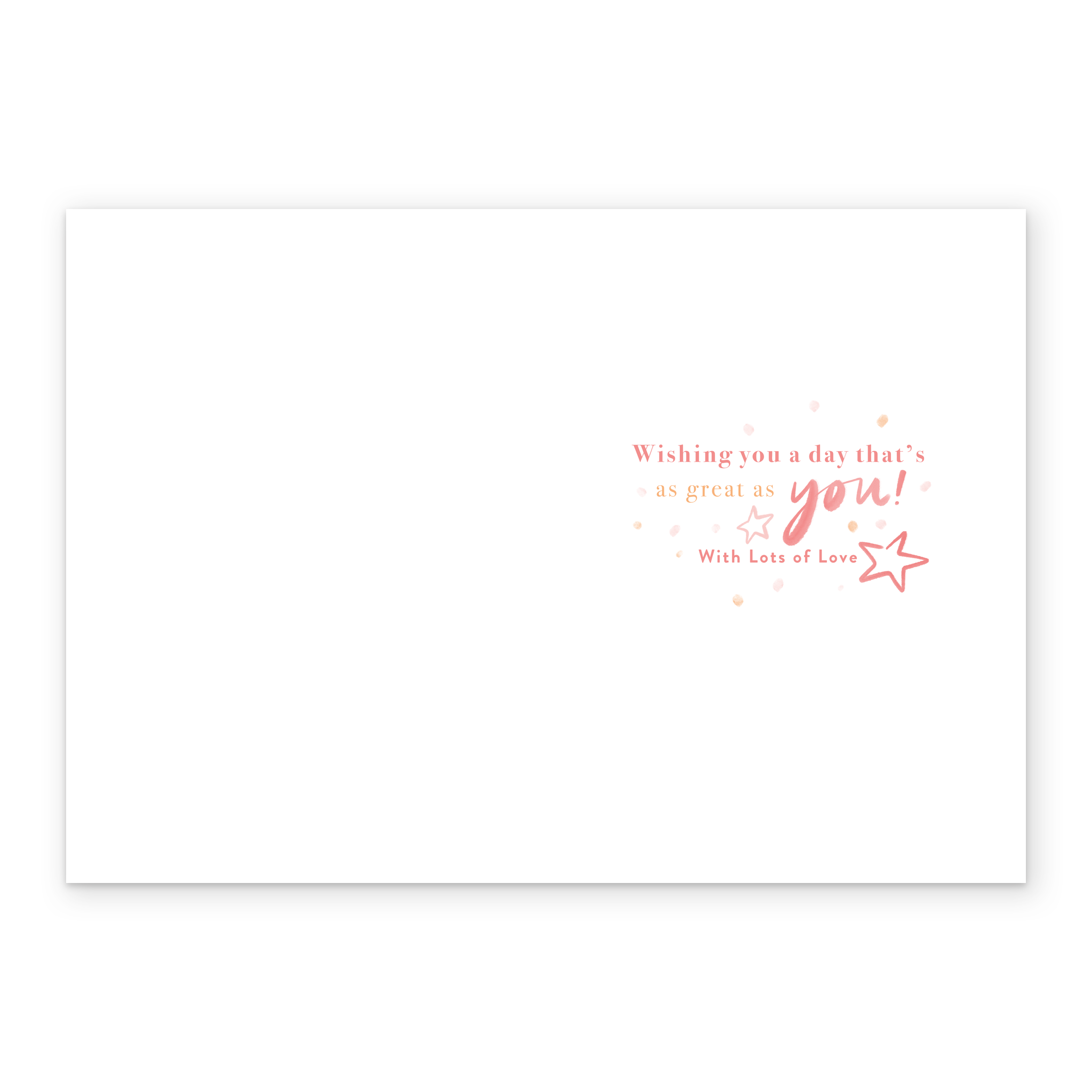 Message inside reads: Wishing you a day that's as great as you! With Lots of Love