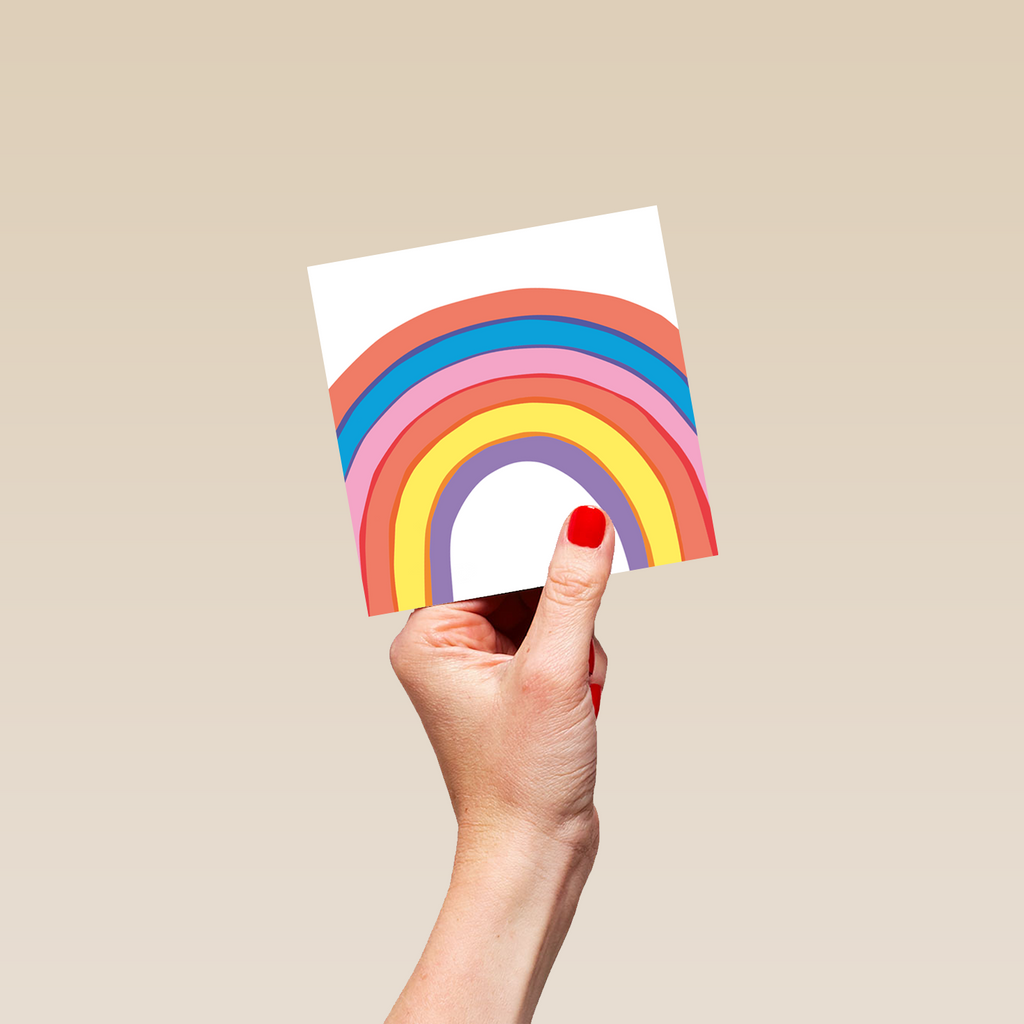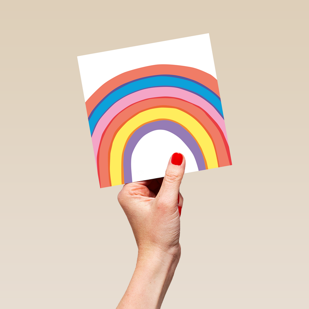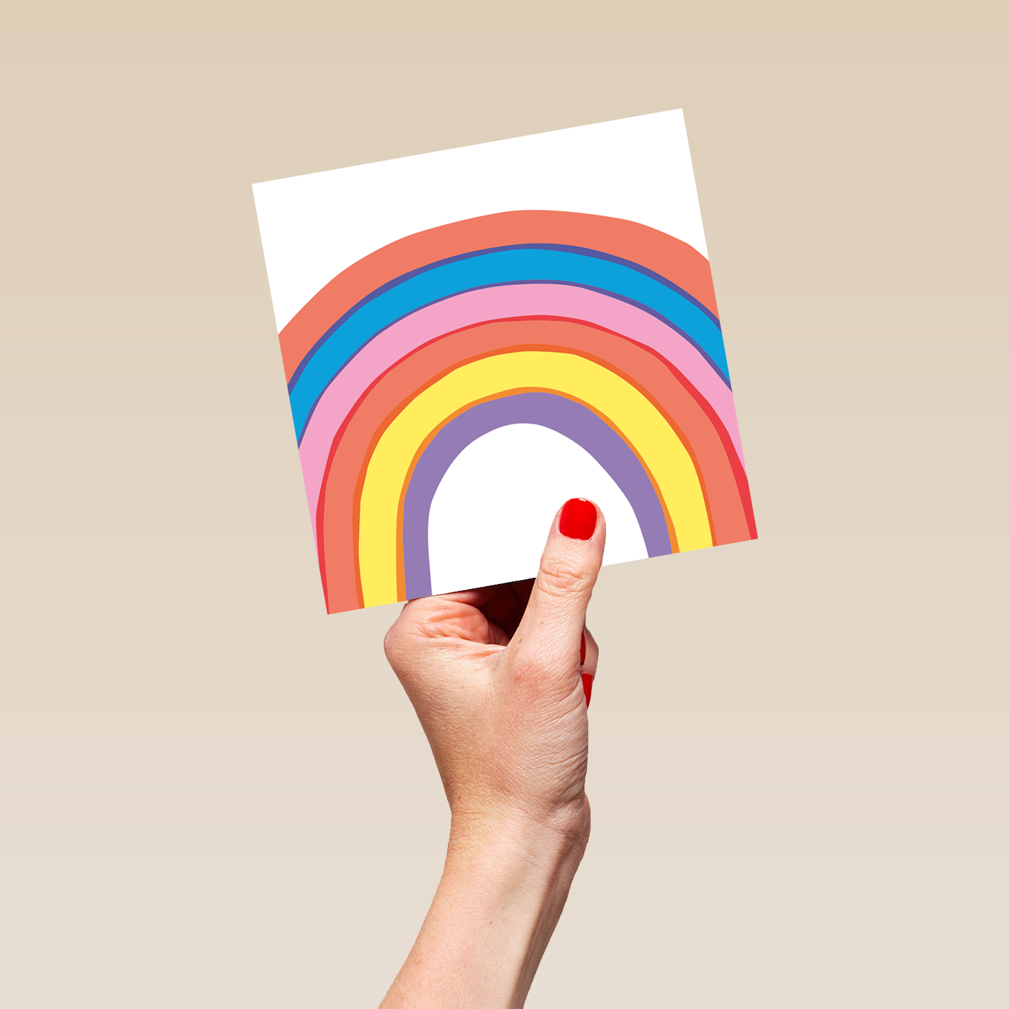 Printed on premium-quality board, this card features a white background with a colourful rainbow, and comes complete with a co-ordinating white envelope.