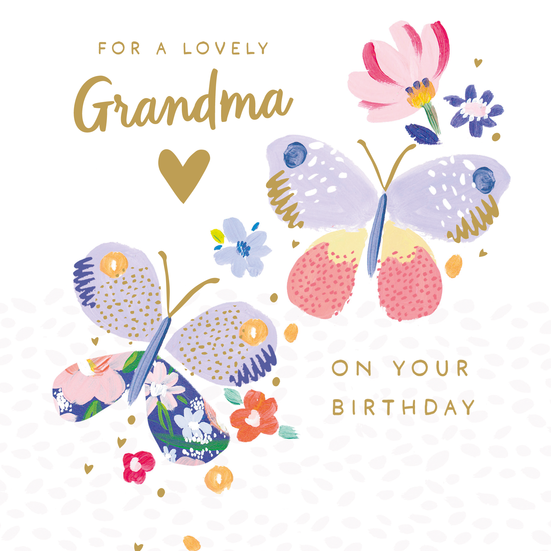 Printed on premium-quality board, this card features an illustration of 2 butterflies with floral patterns, with the message 'For a Lovely [NAME] on Your Birthday', space to personalise a name, and comes complete with a co-ordinating white envelope.