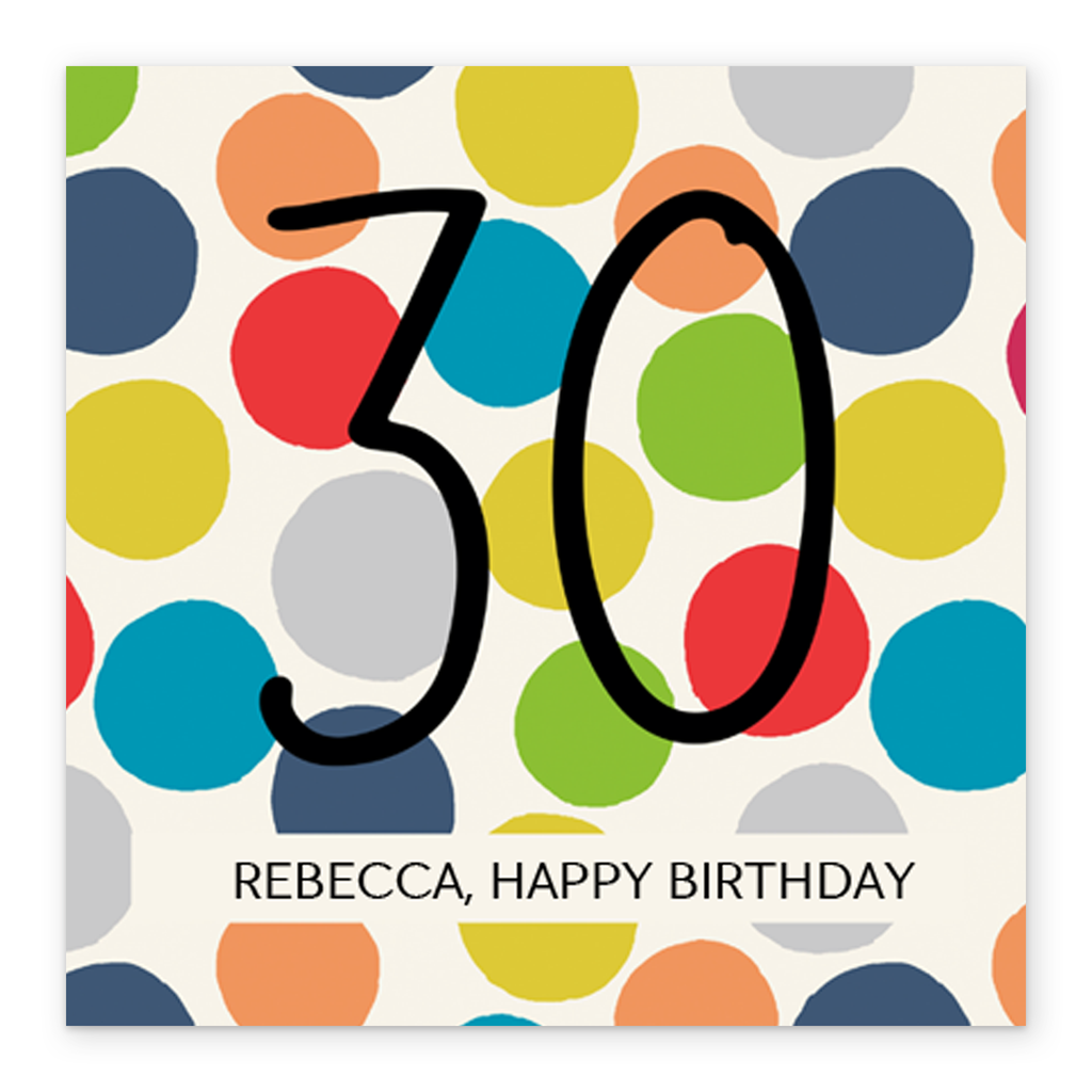 Show them you care with a personalised Editable Happy Polka Dot 30th Birthday Card from Hallmark.