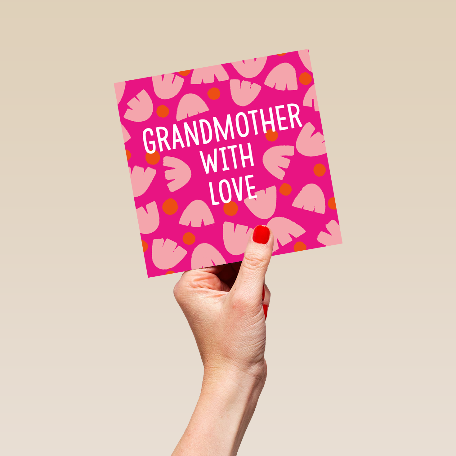 Personalised & Editable Pink Shapes Birthday Card for Grandmother