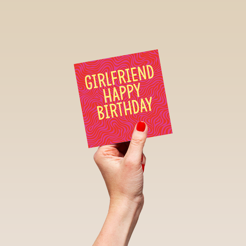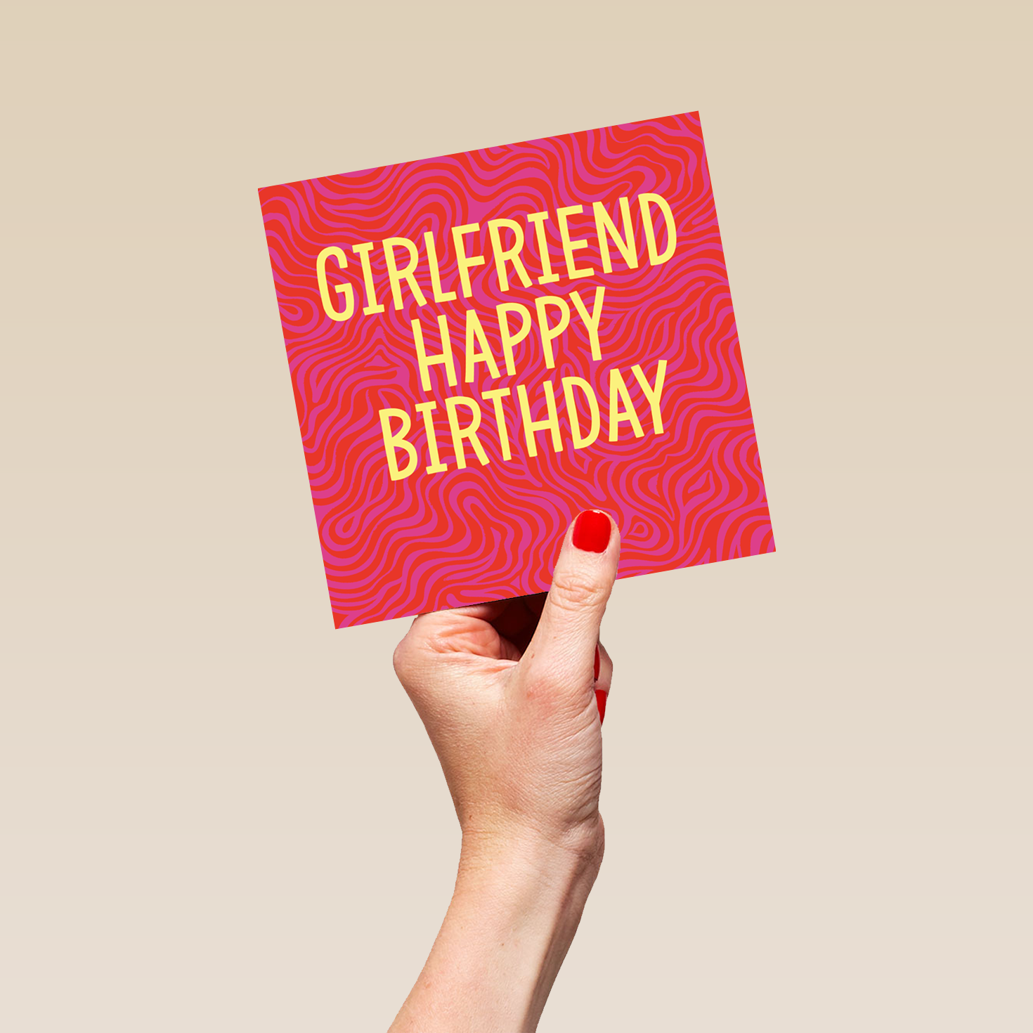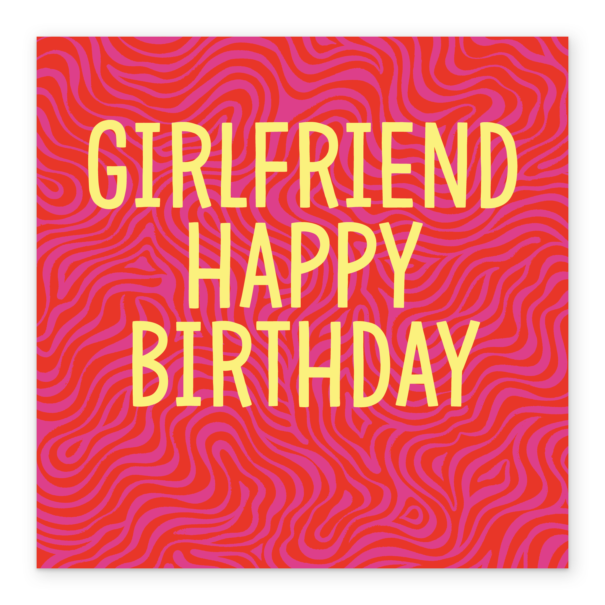 Personalised & Editable Pink Squiggles Birthday Card for Girlfriend