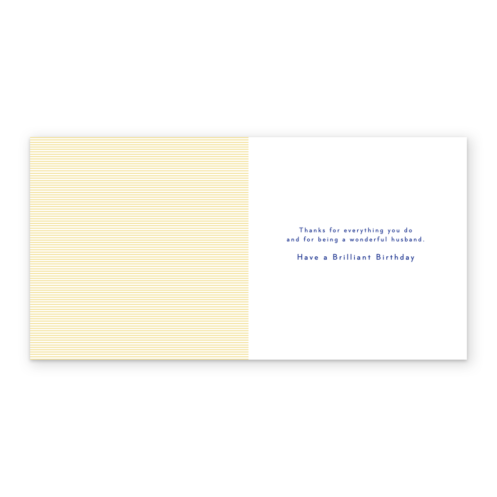 Message inside reads: Thanks for everything you do, and for being a wonderful husband. Have a Brilliant Birthday
