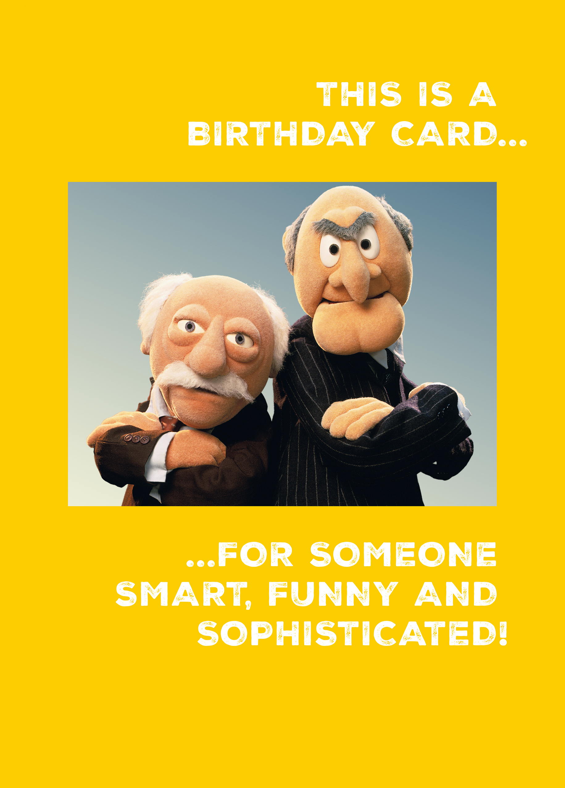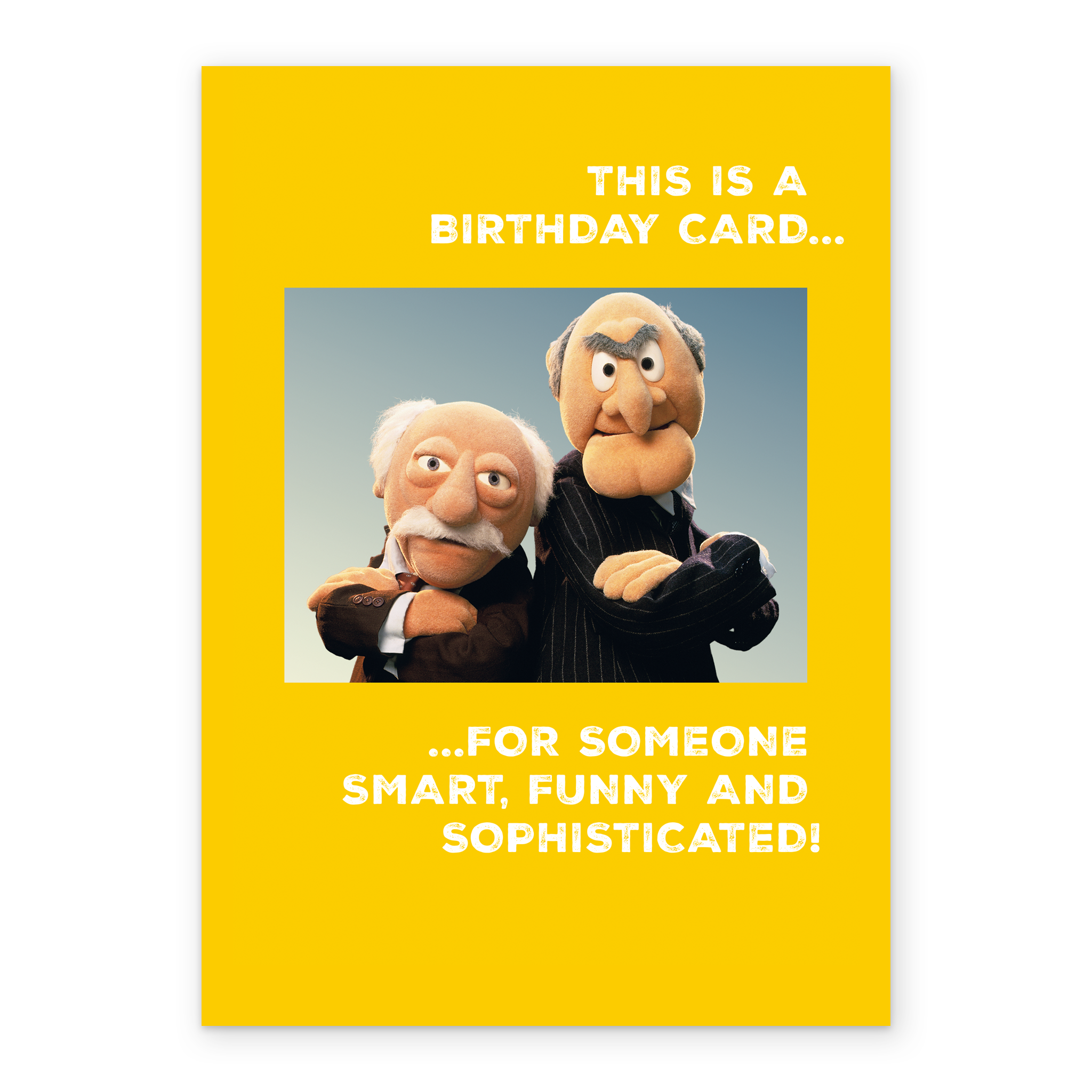 Printed on premium-quality board, this card features Statler and Waldorf from Disney's The Muppets, with the message 'This Is A Birthday Card... ...For Someone Smart, Funny And Sophisticated!', and comes complete with a co-ordinating white envelope.