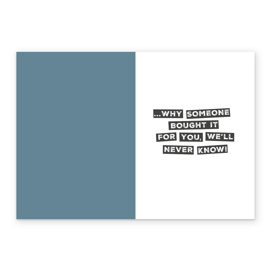 Message inside reads: Why Someone Bought It For You, We'll Never Know!