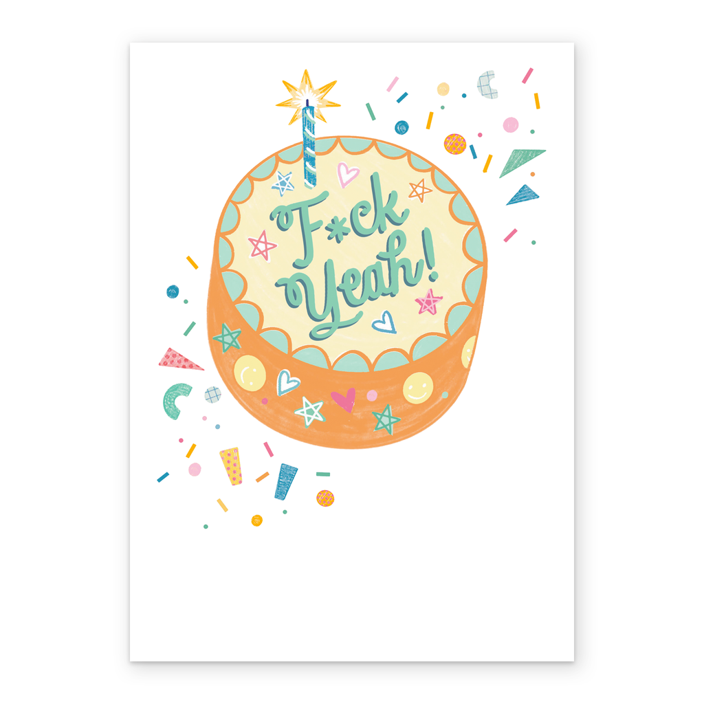 Printed on premium-quality board, this card features an illustration of a Birthday cake with a candle, with the message 'F*ck Yeah!', and comes complete with a co-ordinating white envelope.