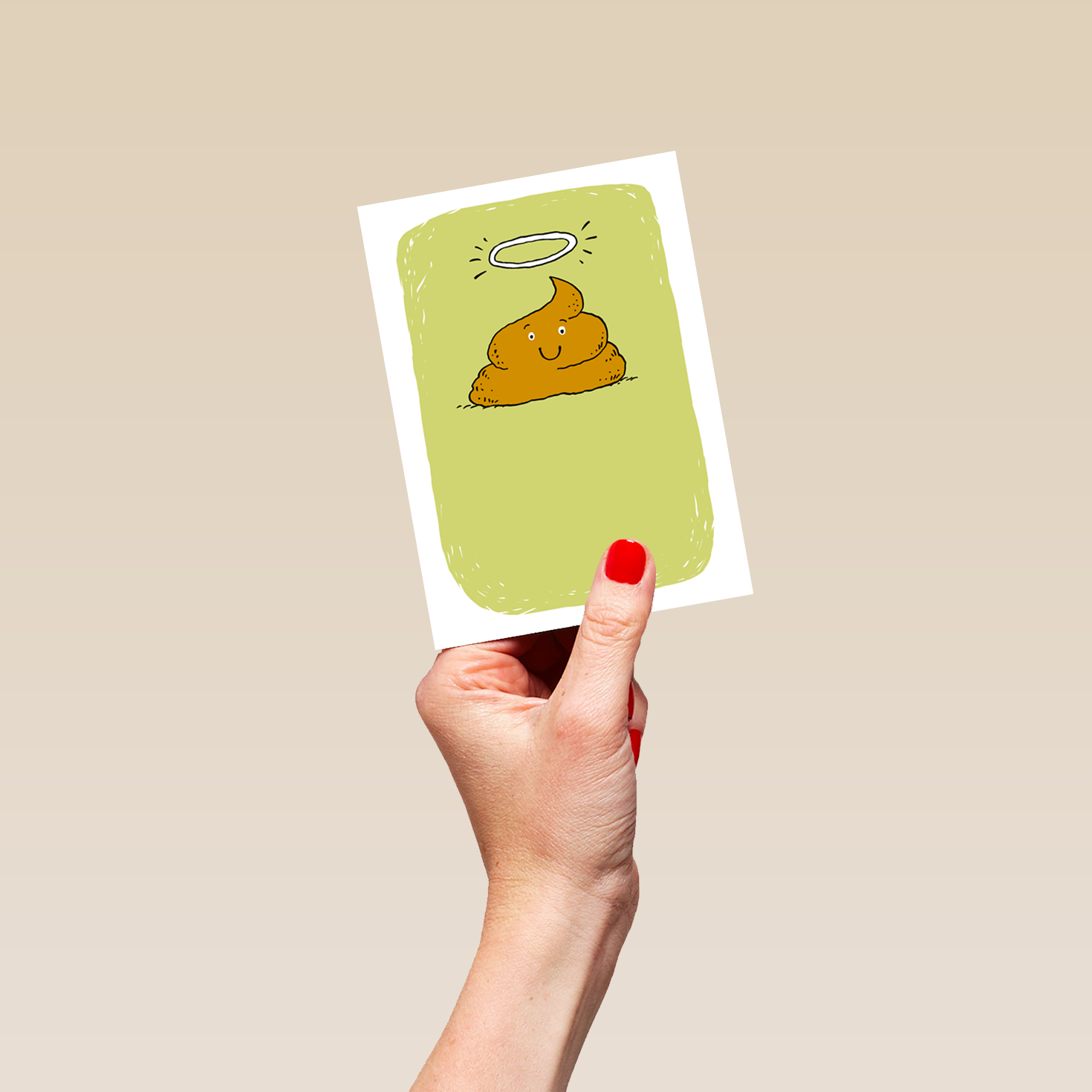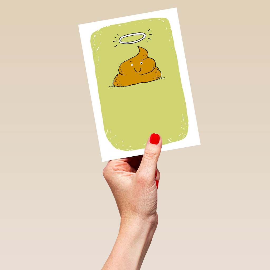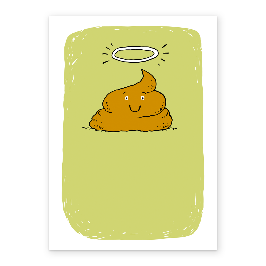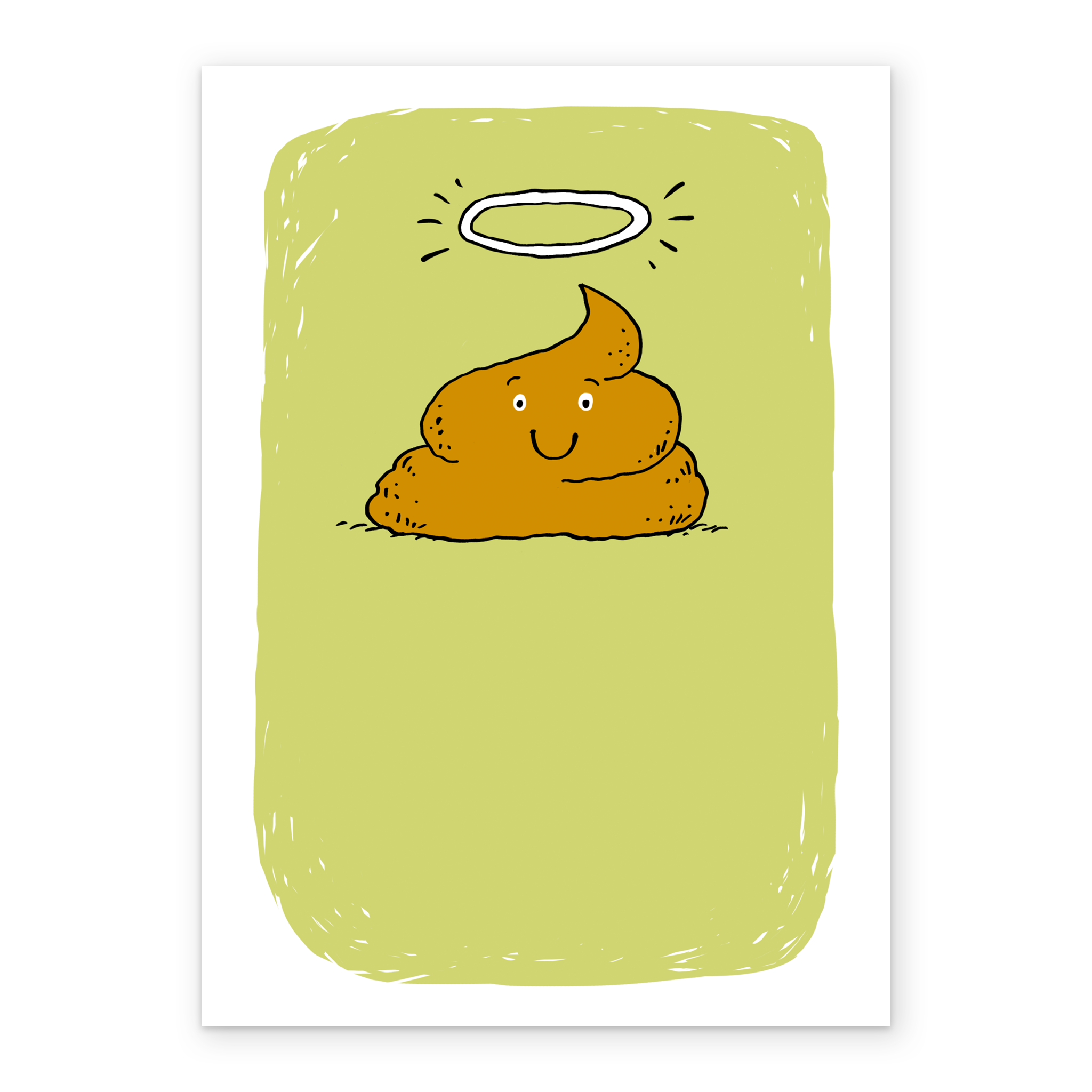 Printed on premium-quality board, this card features a funny illustration of a pile of poop with a halo, and comes complete with a co-ordinating white envelope.