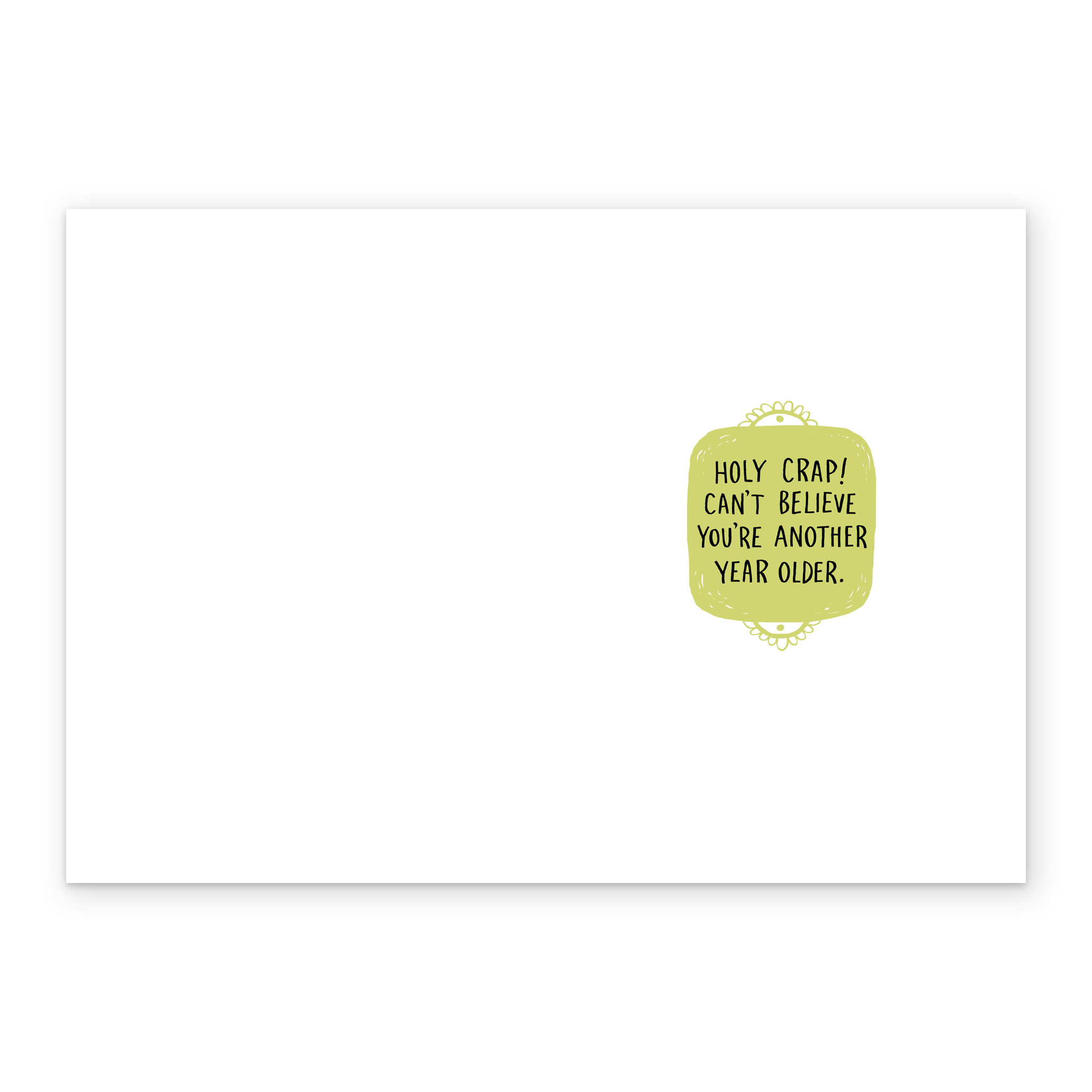 Message inside reads: Holy Crap! Can't Believe You're Another Year Older.