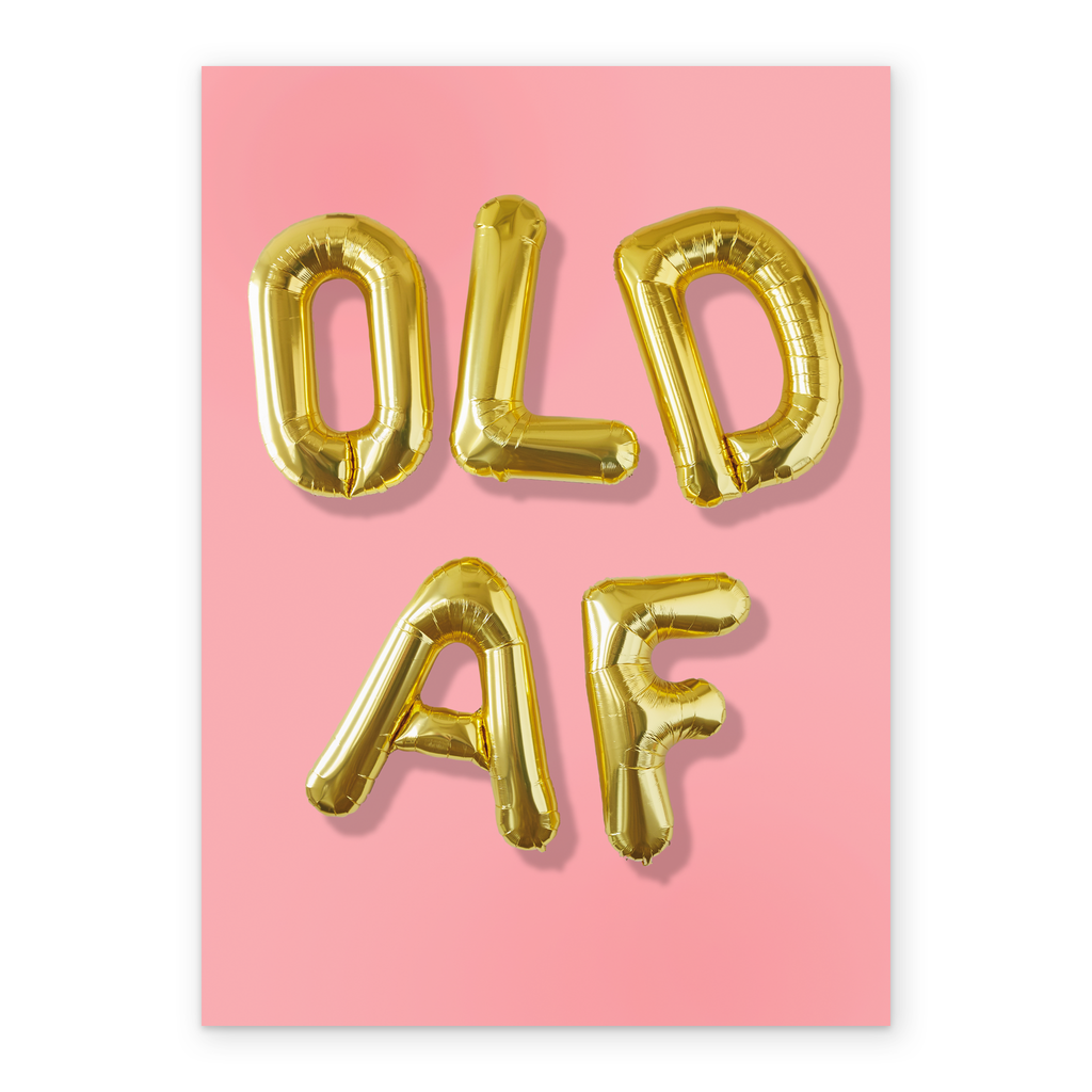 Printed on premium-quality board, this card features golden balloon lettering, with the message 'Old AF', and comes complete with a co-ordinating white envelope.