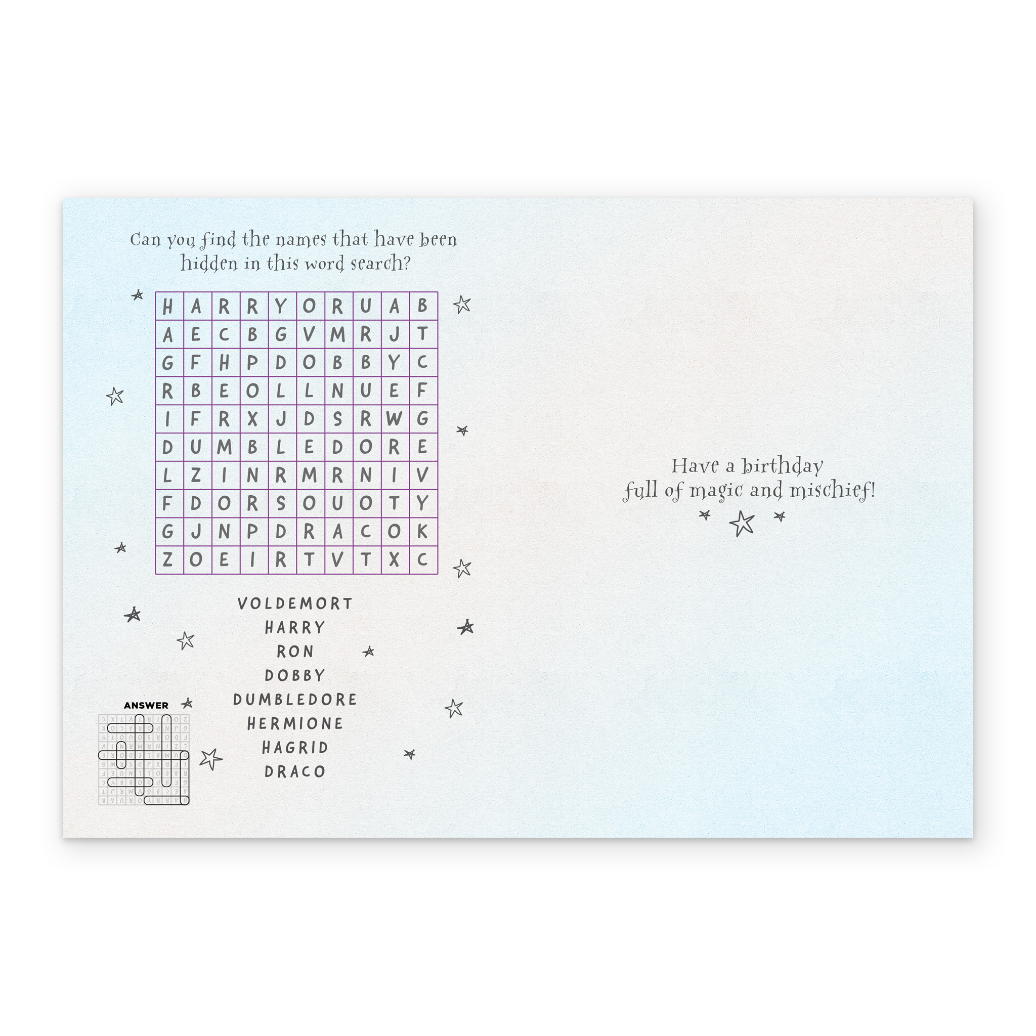 Message inside reads: Have a birthday full of magic and mischief!