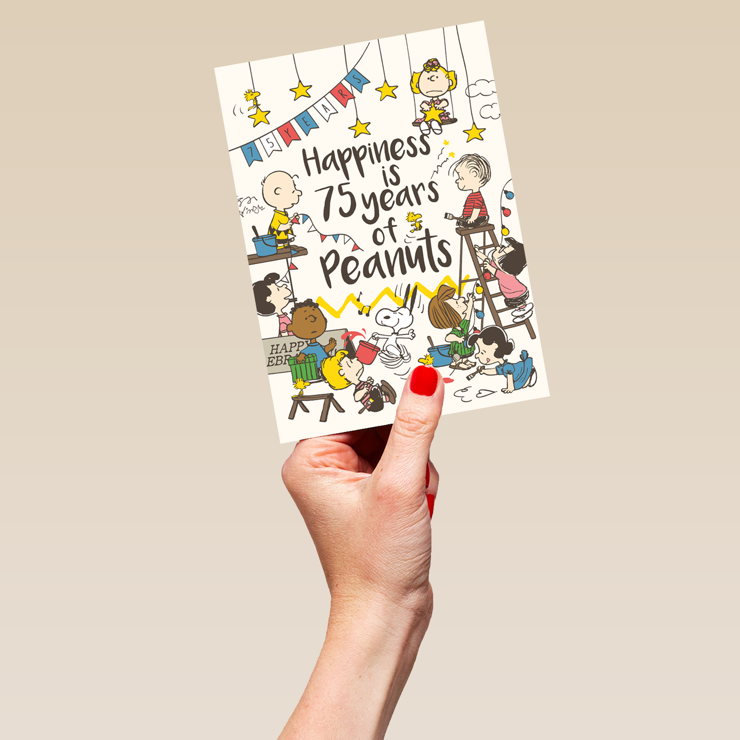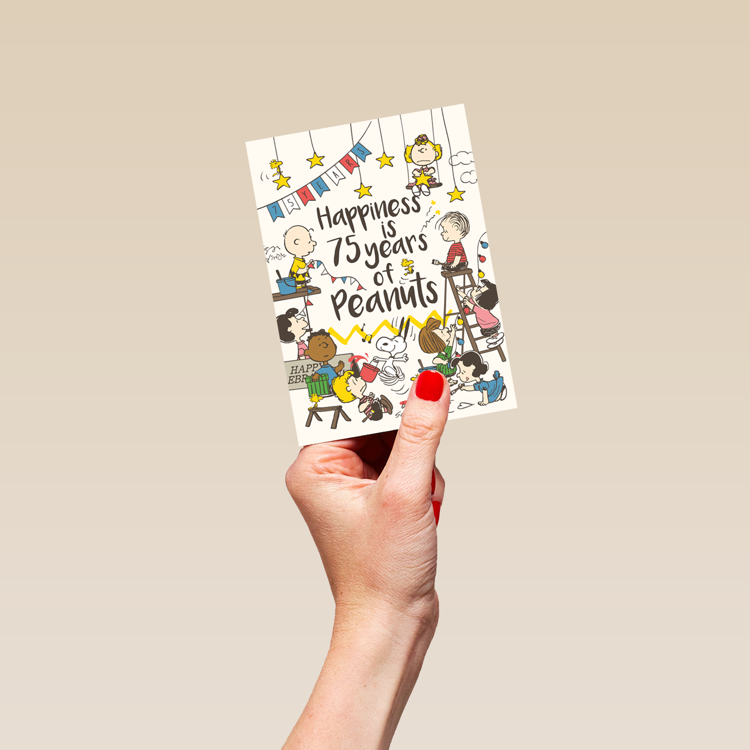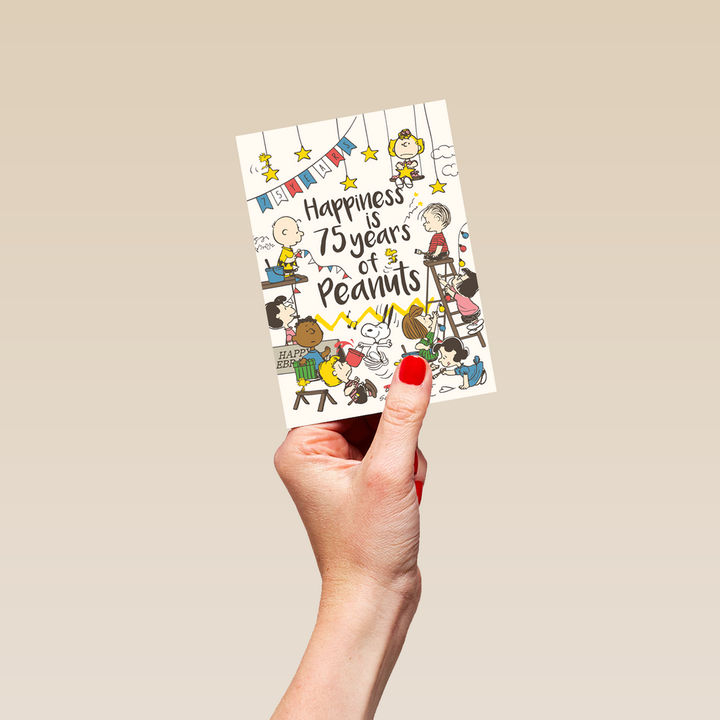 Get ready for the party with Snoopy and the gang! This colourful illustrated card is a great way to celebrate someone's special day, and show your love for the PEANUTS™ crew on their 75th birthday too!