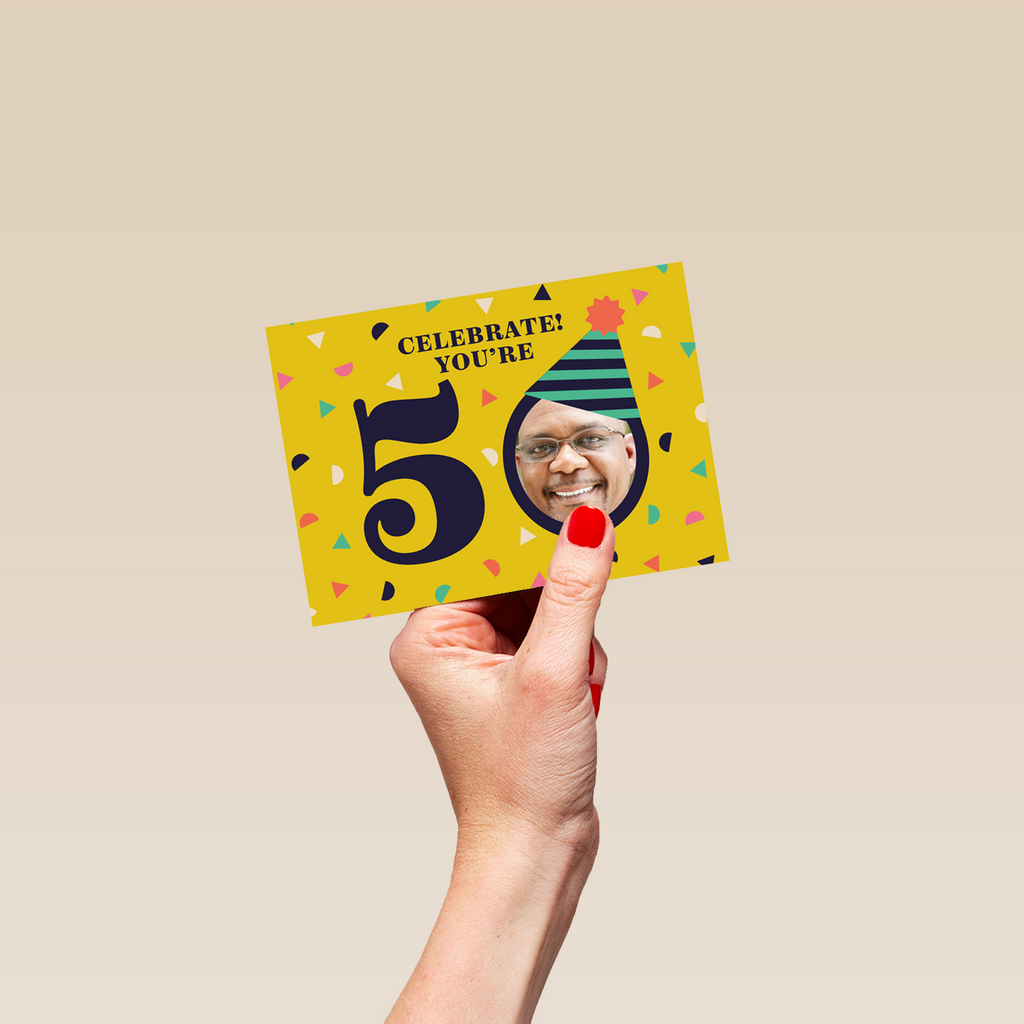 Celebrate their milestone birthday and share in their celebrations, with this personalised 50th birthday card, and upload a photo of the birthday hero!
