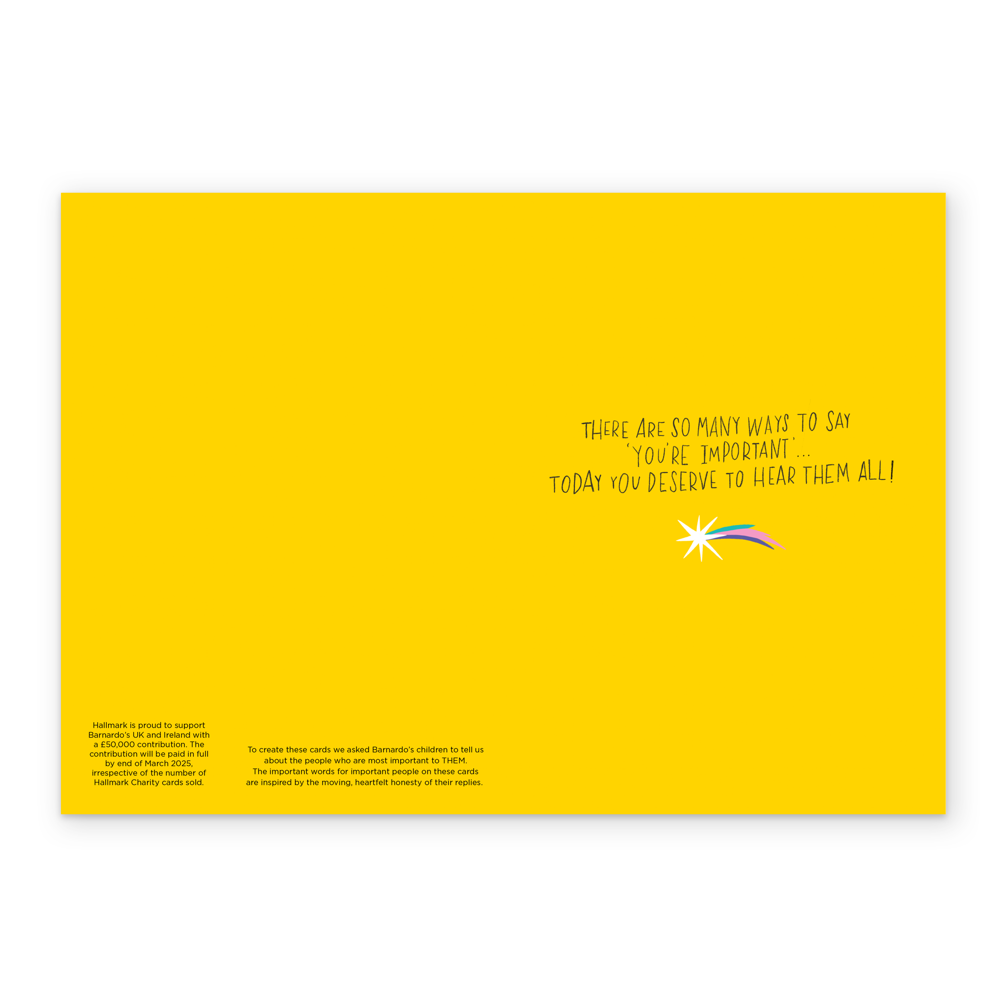 To create these cards we asked Barnardo's children to tell us about the people who are most important to them. The important words for important people on these cards are inspired by the moving, heartfelt honesty of their replies.