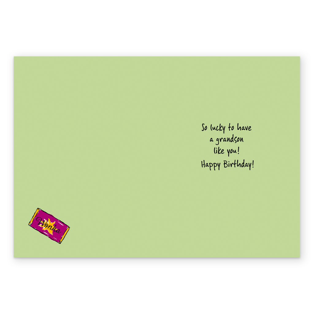 Message inside reads: So lucky to have a grandson like you! Happy Birthday!