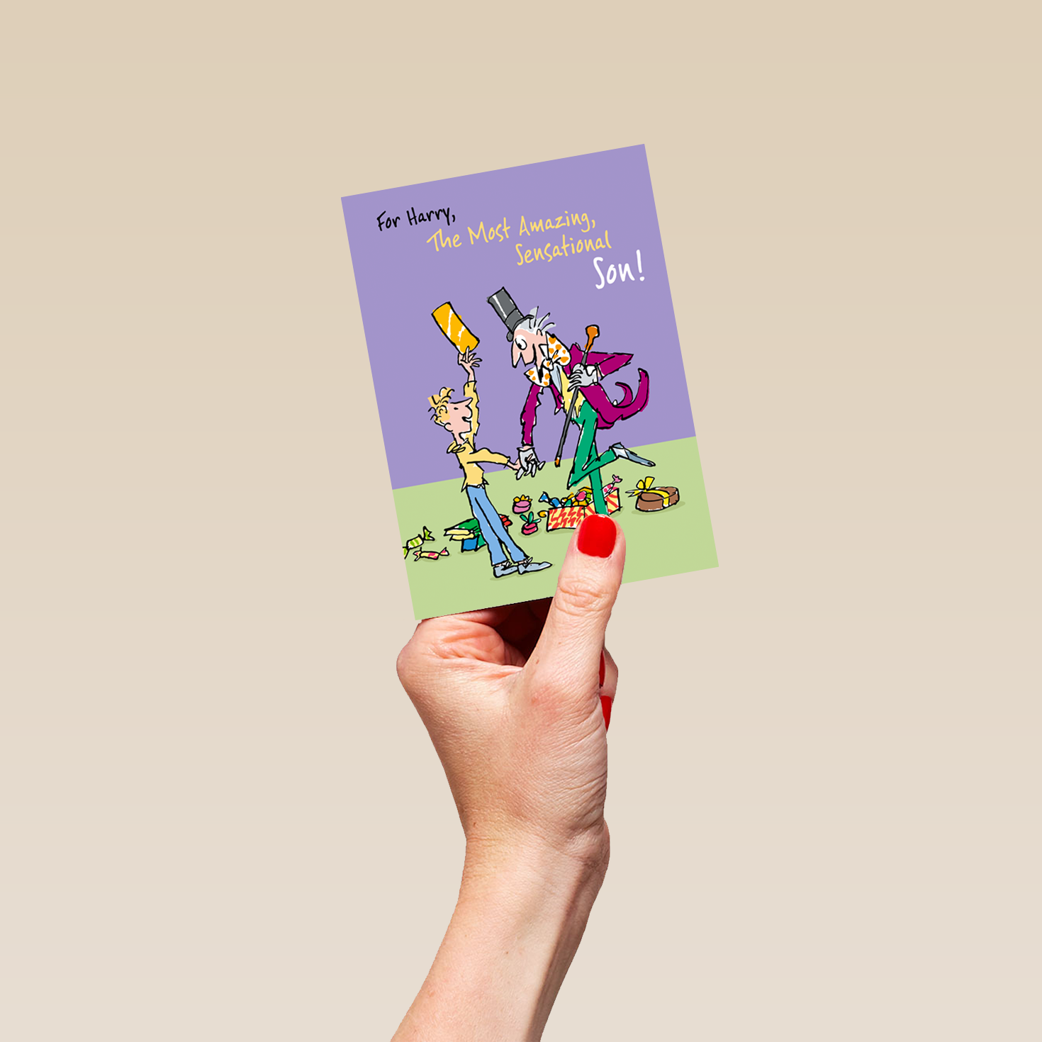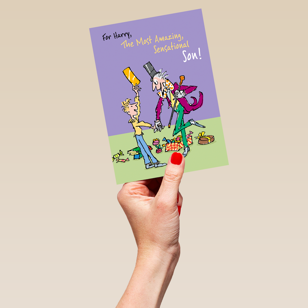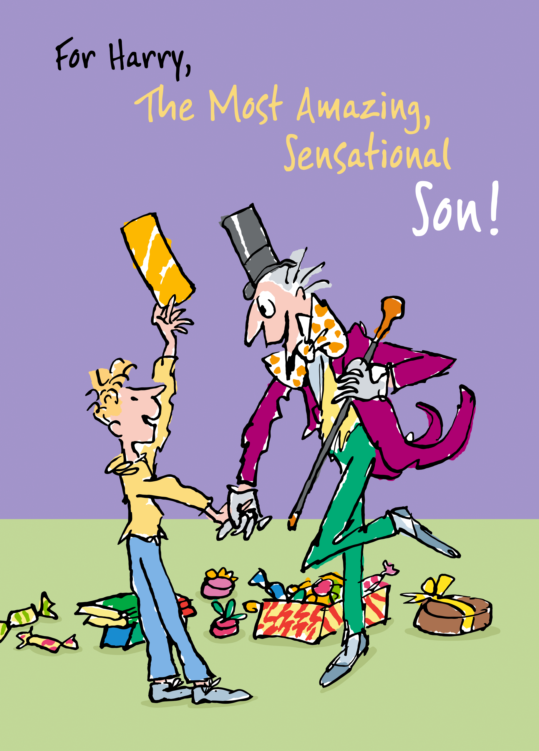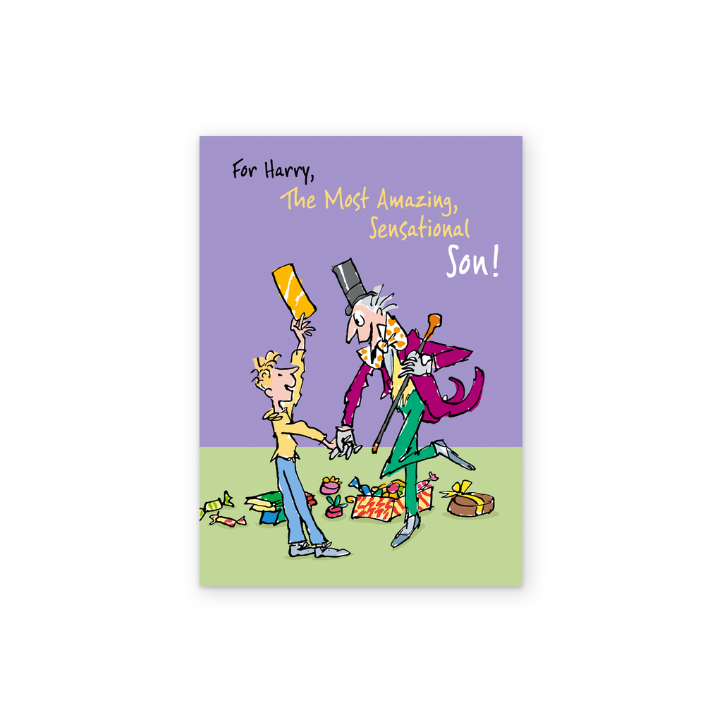 Celebrate a fantastic son on his special day with this brilliant, Charlie and the Chocolate Factory inspired birthday card.