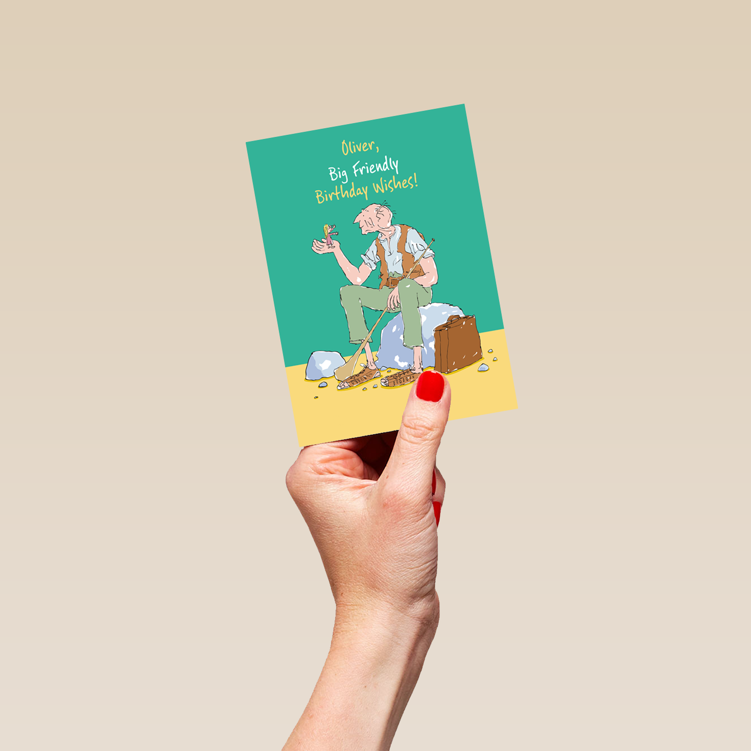 Send the friendliest of birthday wishes to mark their special day, with this colourful BFG inspired card.