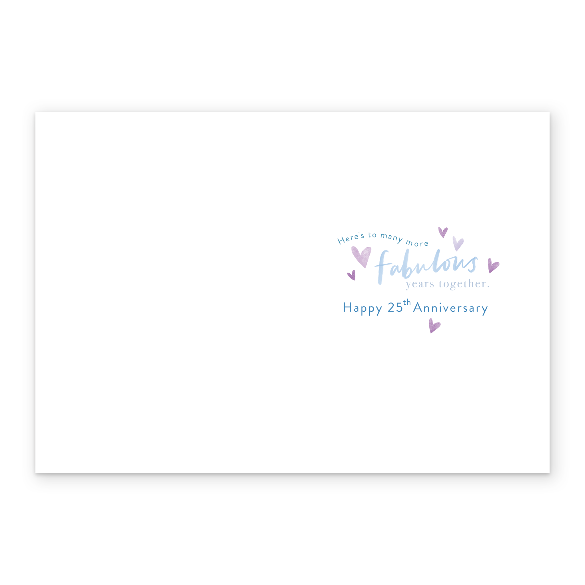 Message inside reads: Here's to many more fabulous years together. Happy 25th Anniversary