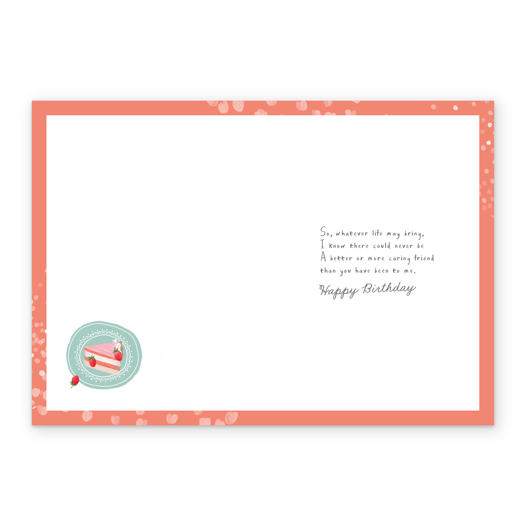 Message inside reads: So, whatever life may bring, I know there could never be A better or more caring friend than you have been to me. Happy Birthday