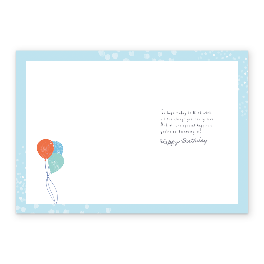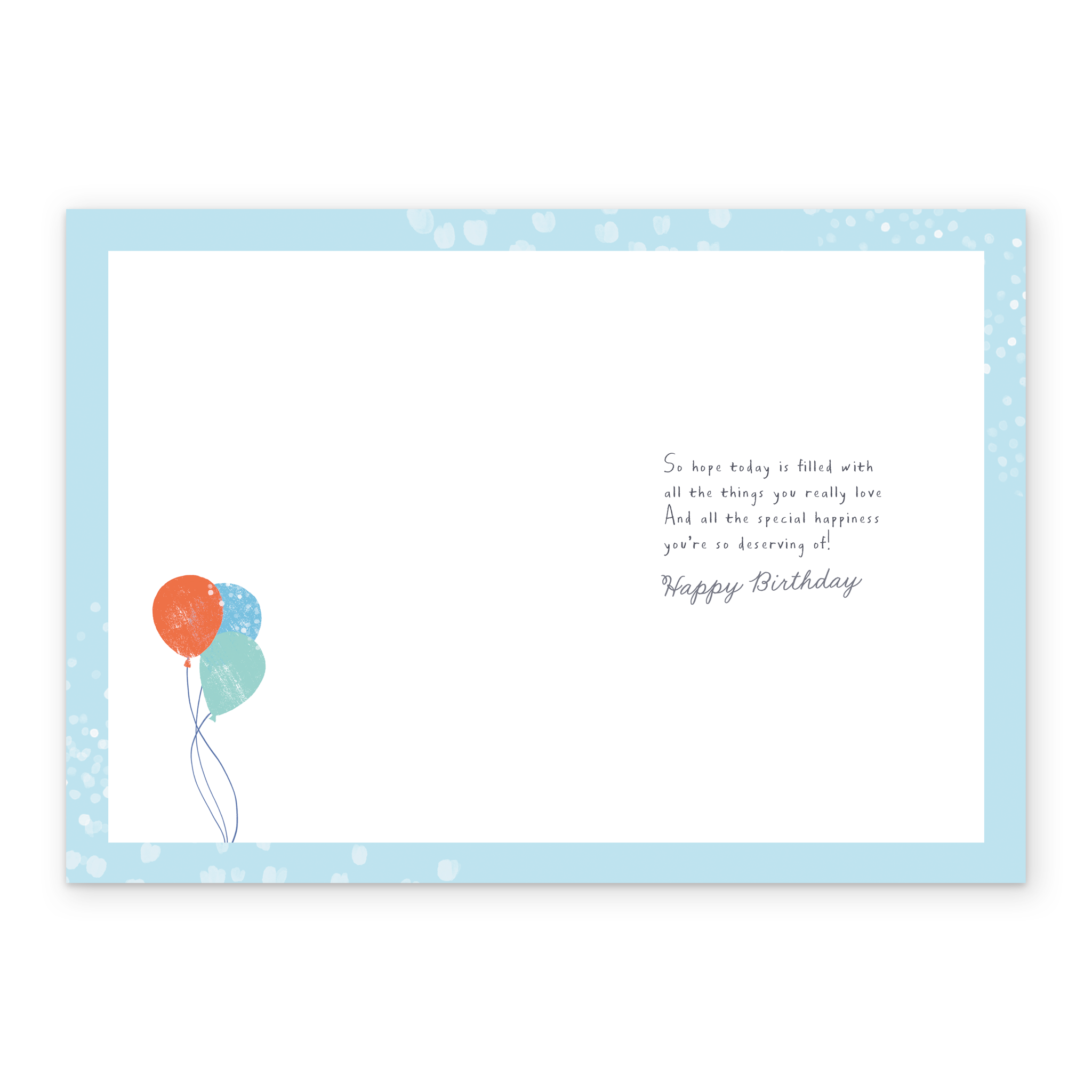 Message inside reads: So hope today is filled with all the things you really love And all the special happiness you're so deserving of! Happy Birthday