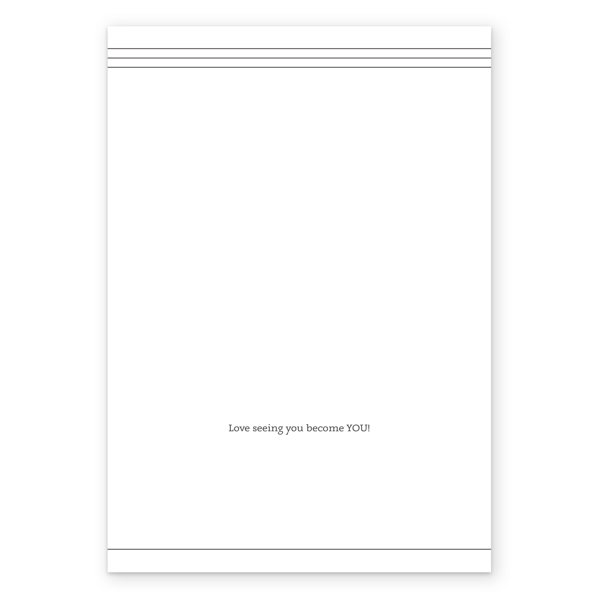 Message inside reads: Love seeing you become you!