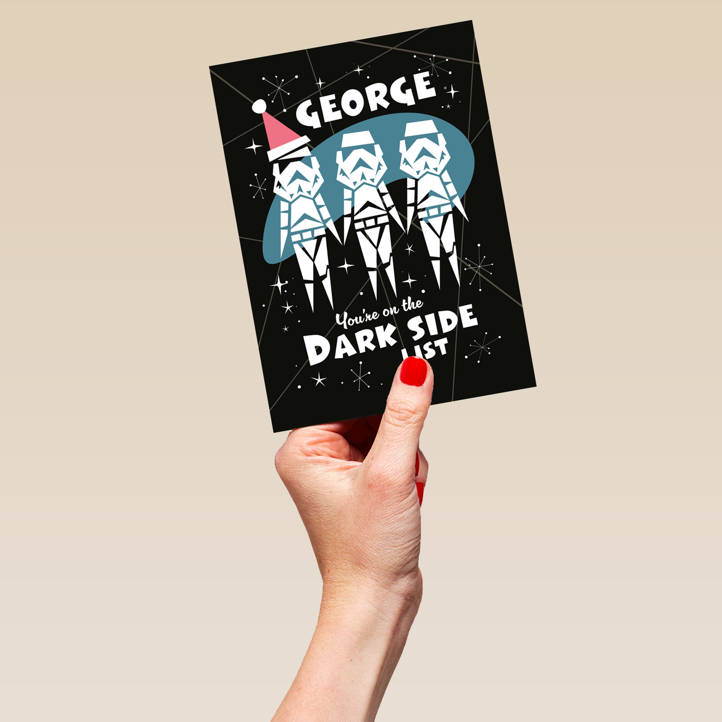 Have they been naughty? Nice? Or are they on the Dark Side list? Make their Christmas extra fun with this personalised and editable Christmas card. The perfect way to make their festive season out-of-this-world.