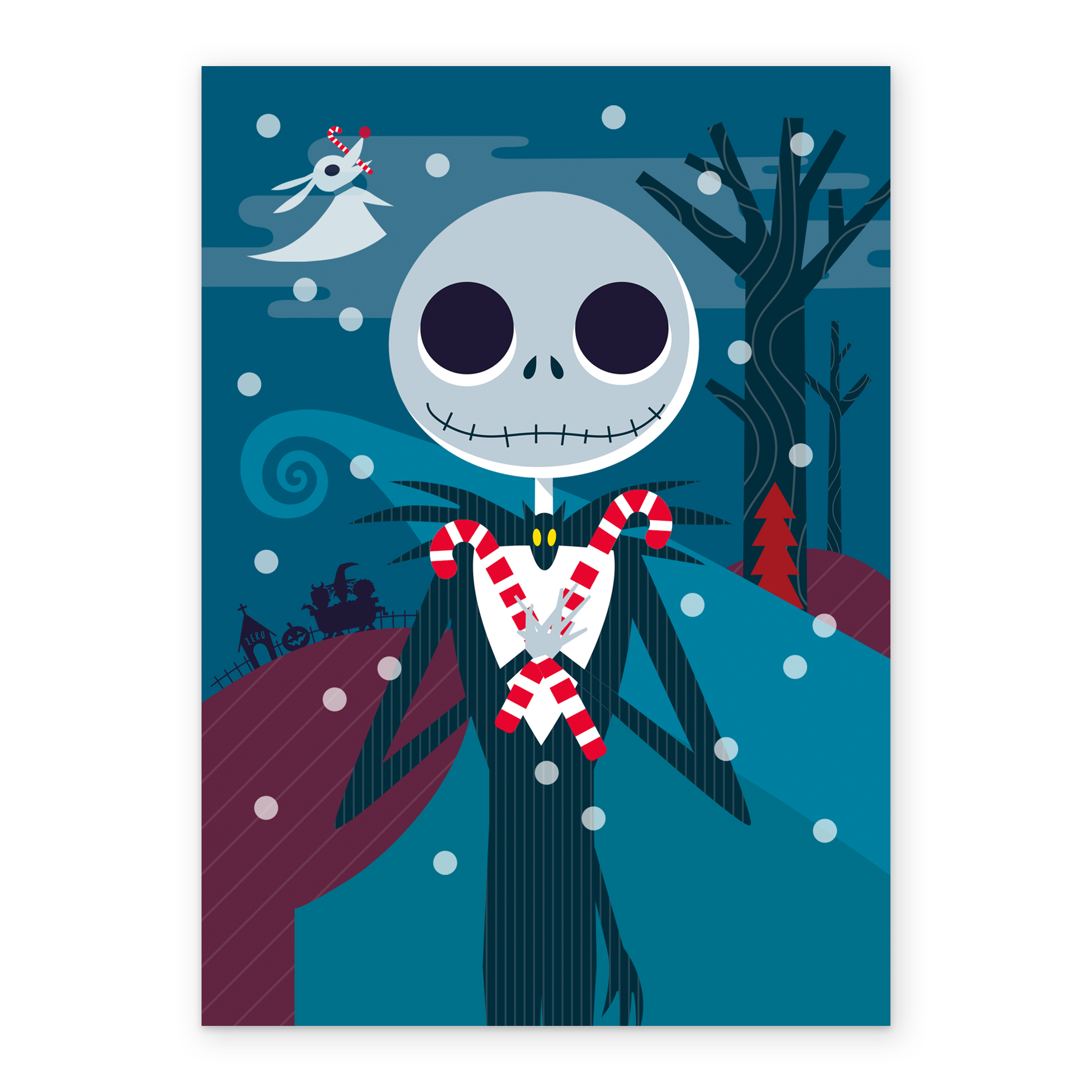 Printed on premium-quality board, this card features Jack Skellington and Zero from The Nightmare Before Christmas with candy canes, and comes complete with a co-ordinating white envelope.