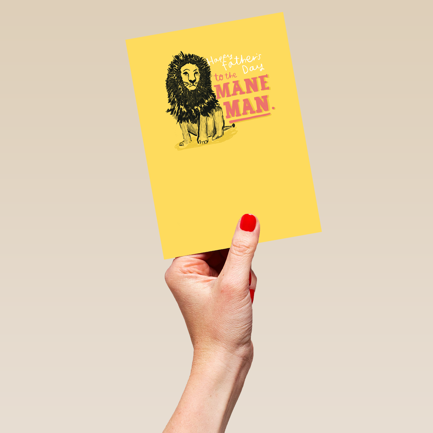 Personalised Contemporary Lion To The Mane Man Happy Father's Day Card