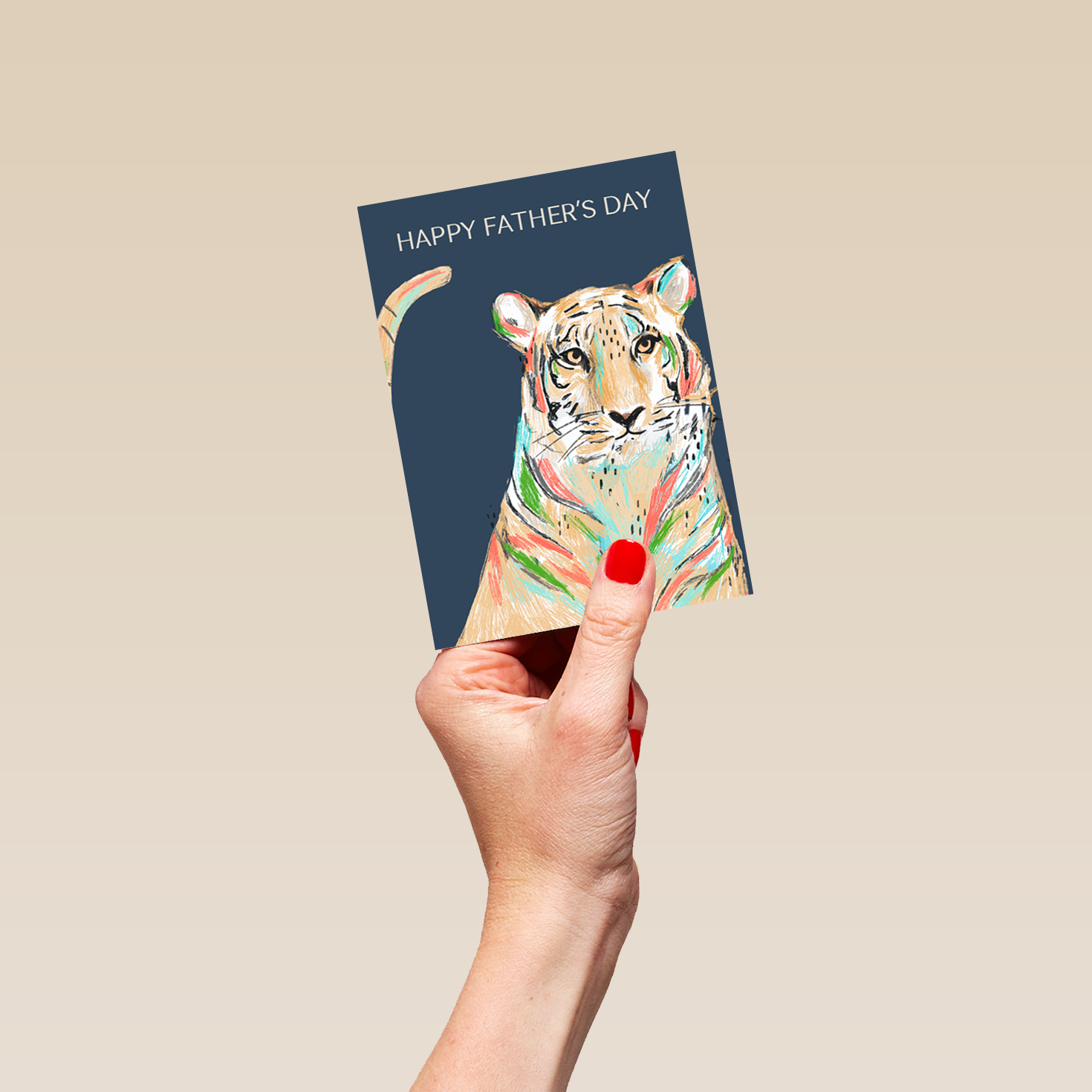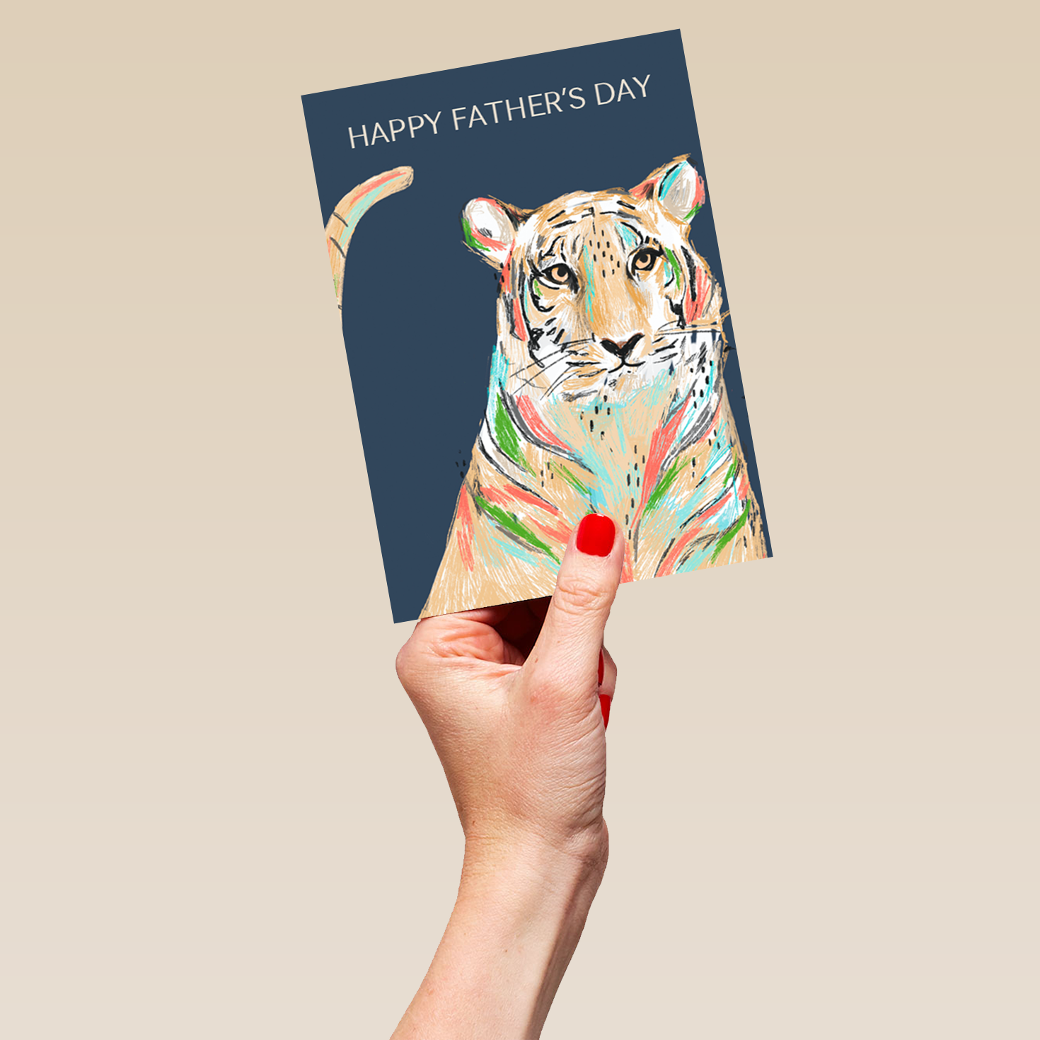 Show them you care with a personalised editable illustrated tiger Father's Day card from Hallmark. Our greetings cards are printed on premium quality, FSC®-certified card & delivered nationwide. This card is available as standard 12cm by 16.7cm and large 15.5cm by 21.6cm.