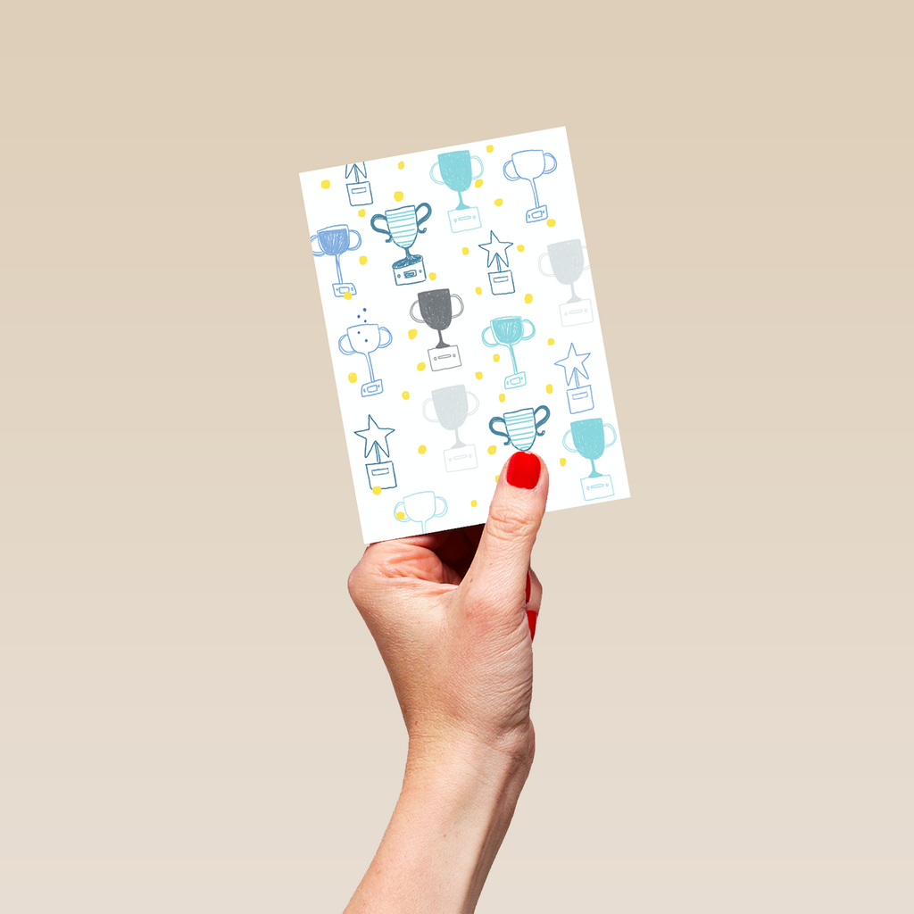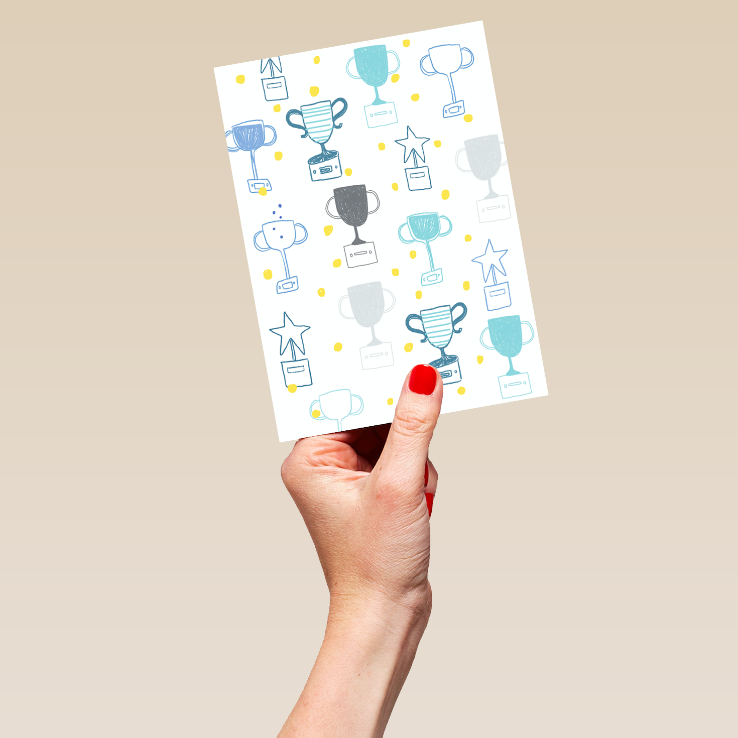 Show them you care with a personalised trophy pattern Father's Day card from Hallmark. Our Father's Day cards are printed on premium quality, FSC®-certified card & delivered nationwide. This card is available as standard 12cm by 16.7cm and large 15.5cm by 21.6cm.
