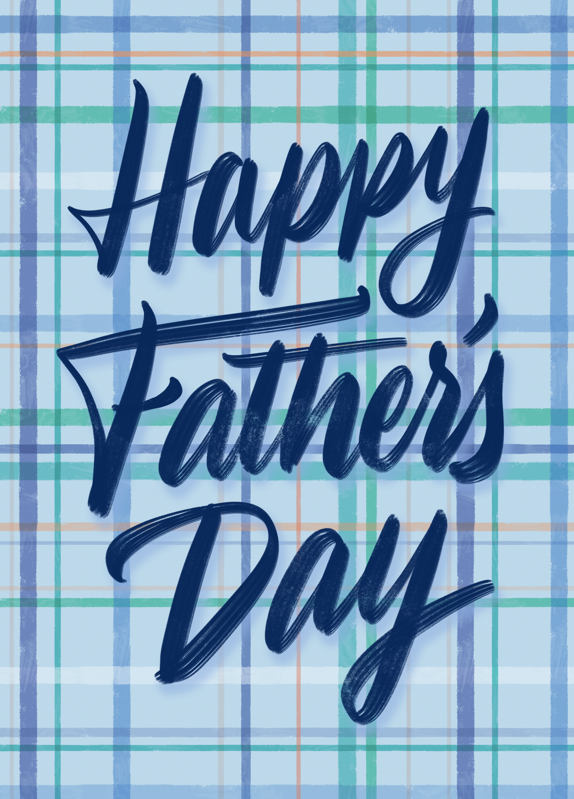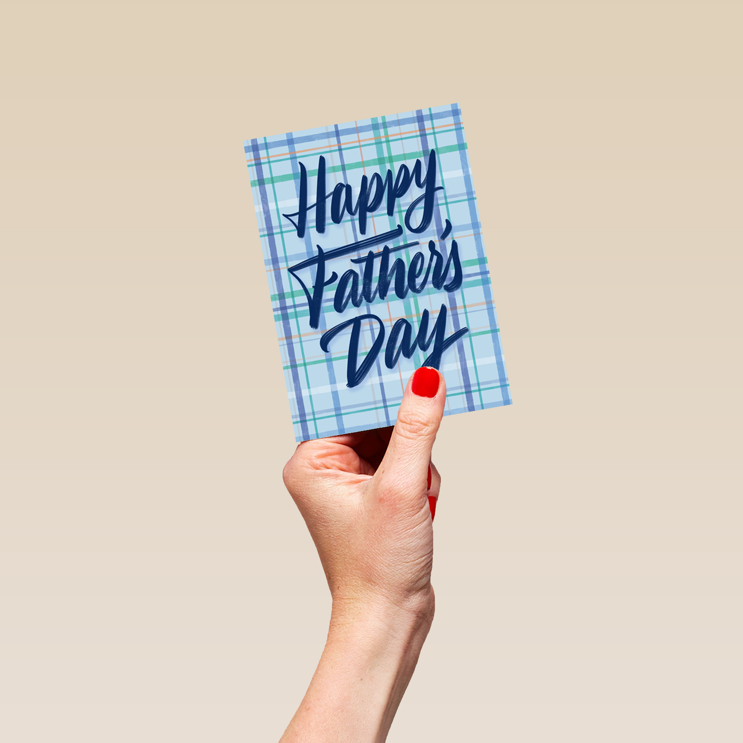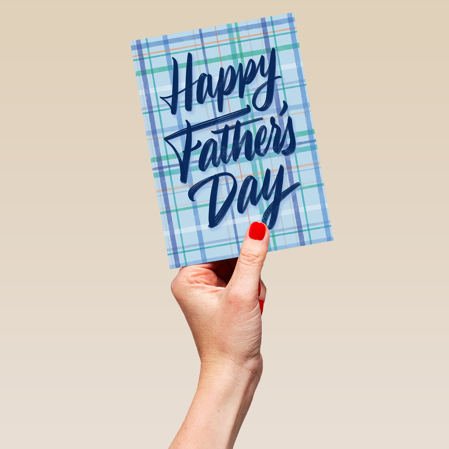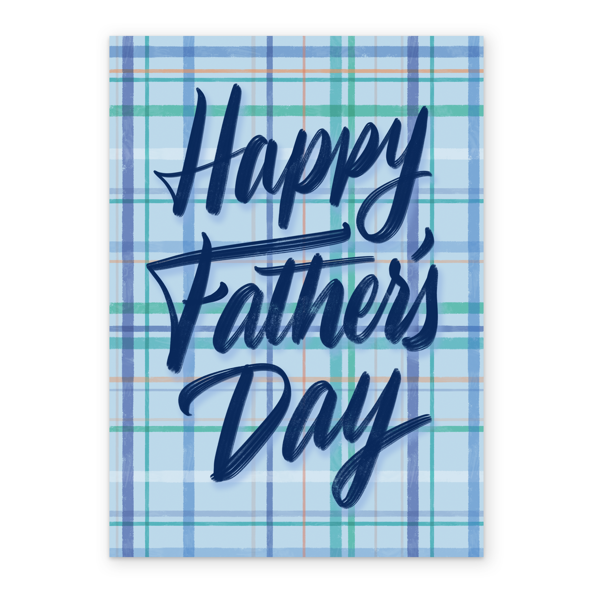 Printed on premium-quality board, this card features a blue plaid background, with the message 'Happy Father's Day', and comes complete with a co-ordinating white envelope.