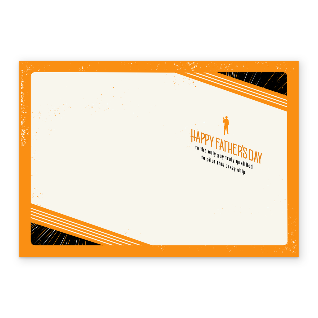 Message inside reads: Happy Father's Day to the only guy truly qualified to pilot this crazy ship