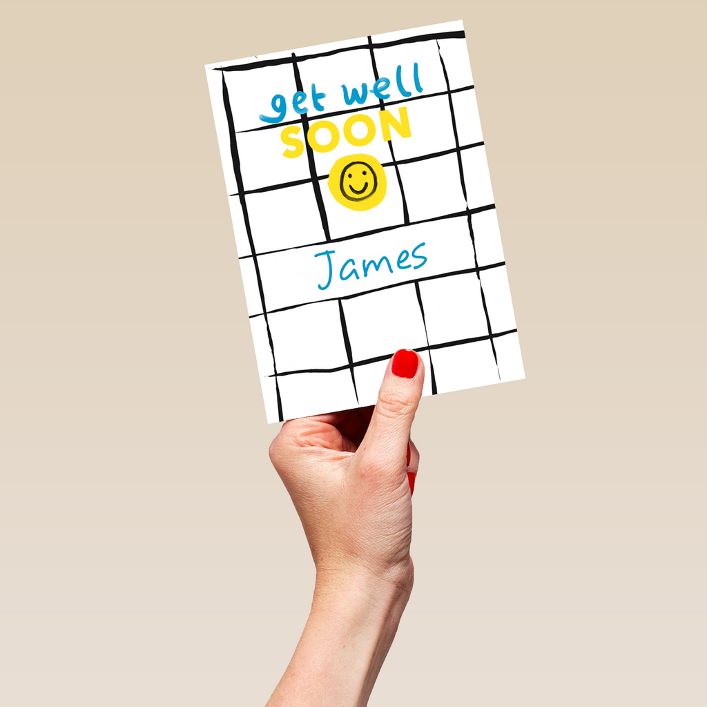 Send a get well soon wish and brighten up their home with this fun personalised and editable Get Well Soon card. The perfect way to put a smile on their face and love in their heart.