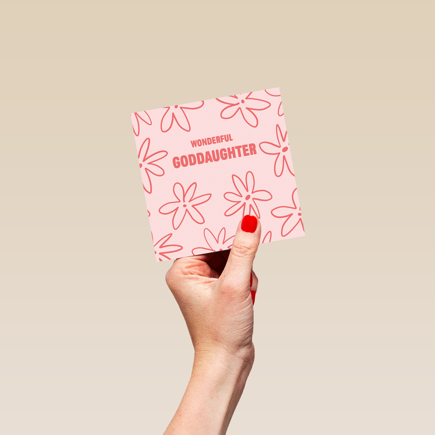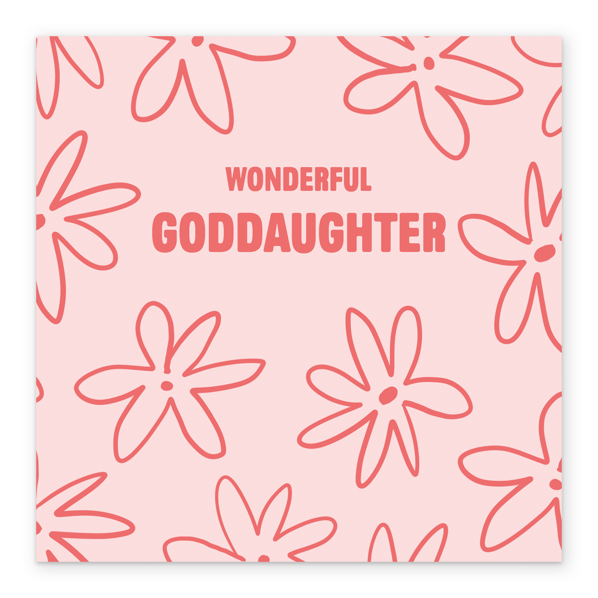 Printed on premium-quality board, this card features a simple pink floral line art, with the message 'Wonderful Goddaughter', space to personalise your message, and comes complete with a co-ordinating white envelope.