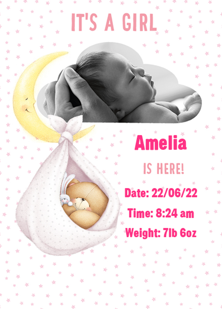 Welcome precious new babies into the world with a beautifully personalised card created just for them.