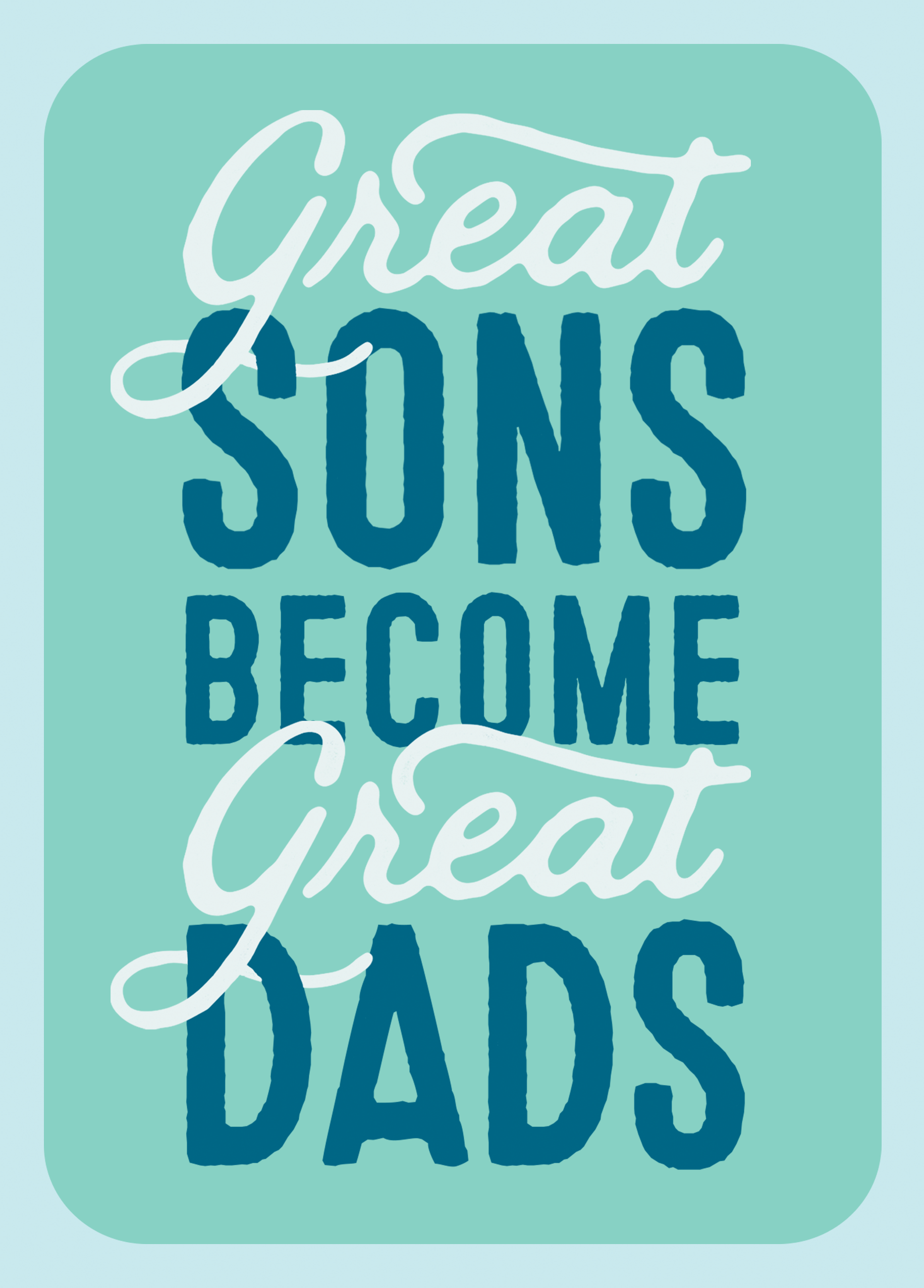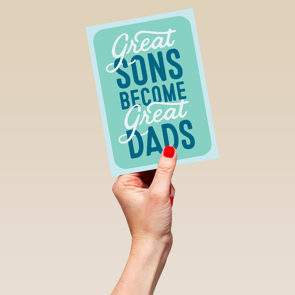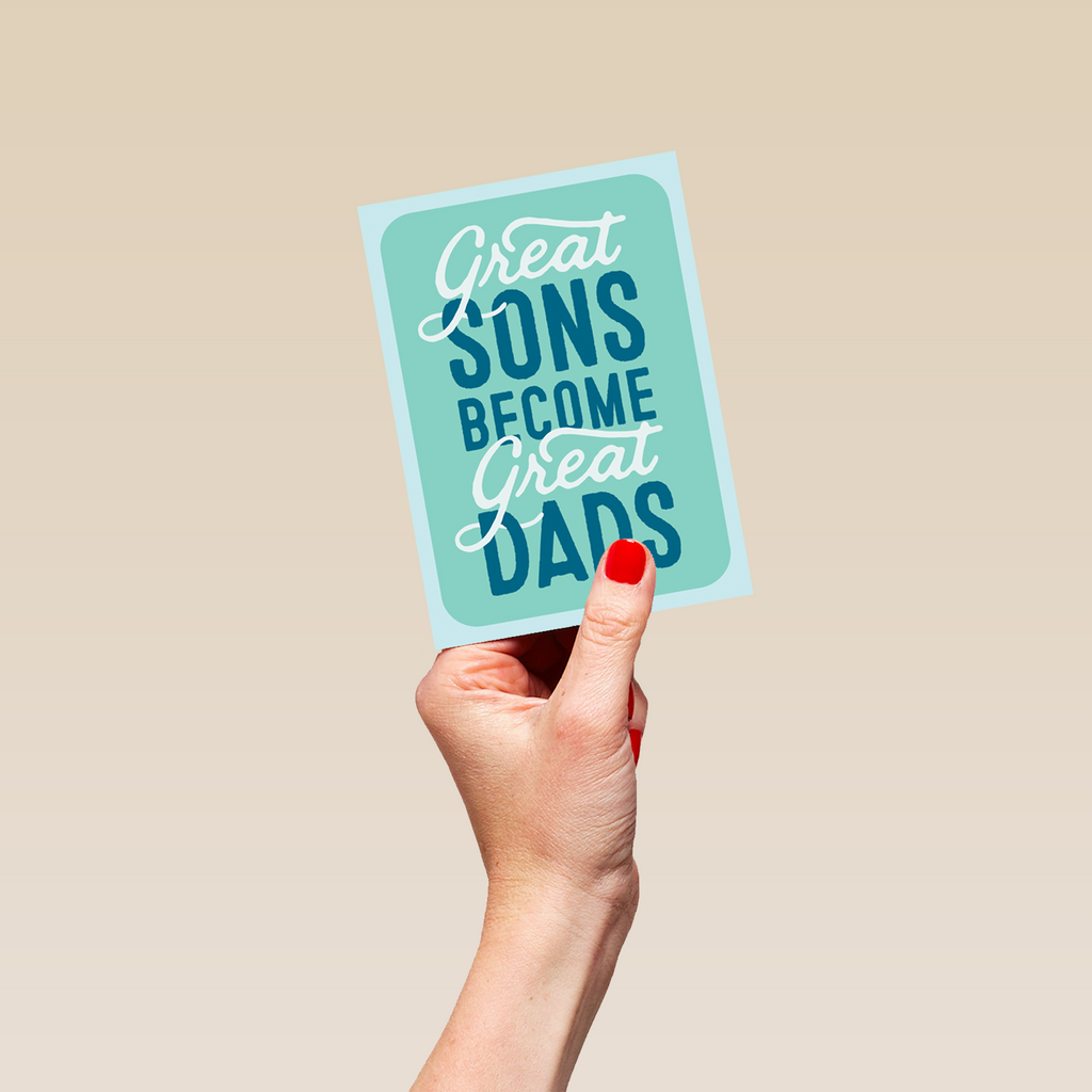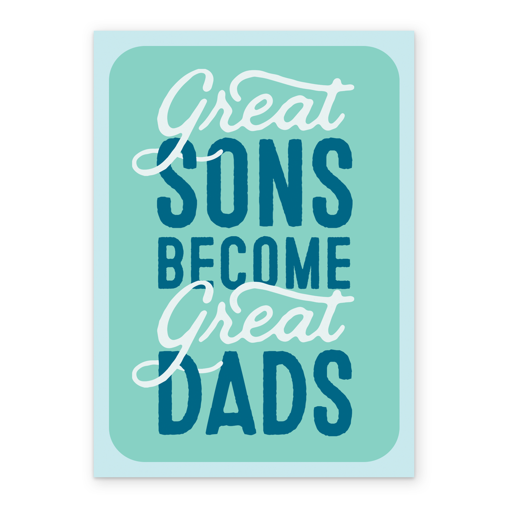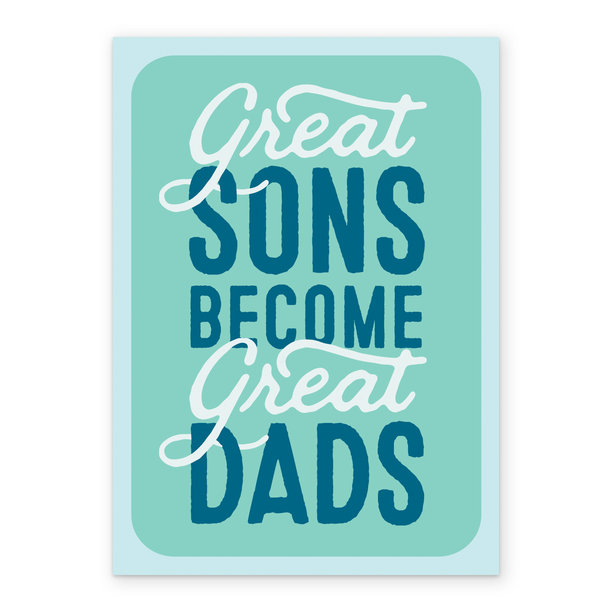 Printed on premium-quality board, this card features a blue background with lettering, with the message 'Great Sons Become Great Dads', and comes complete with a co-ordinating white envelope.