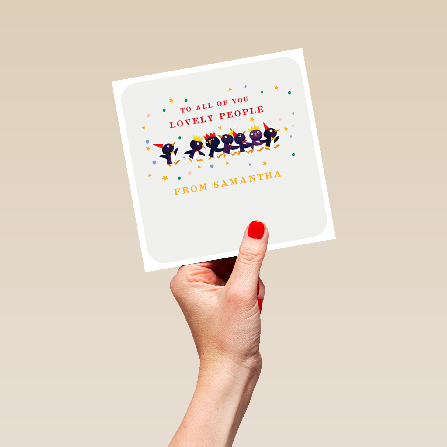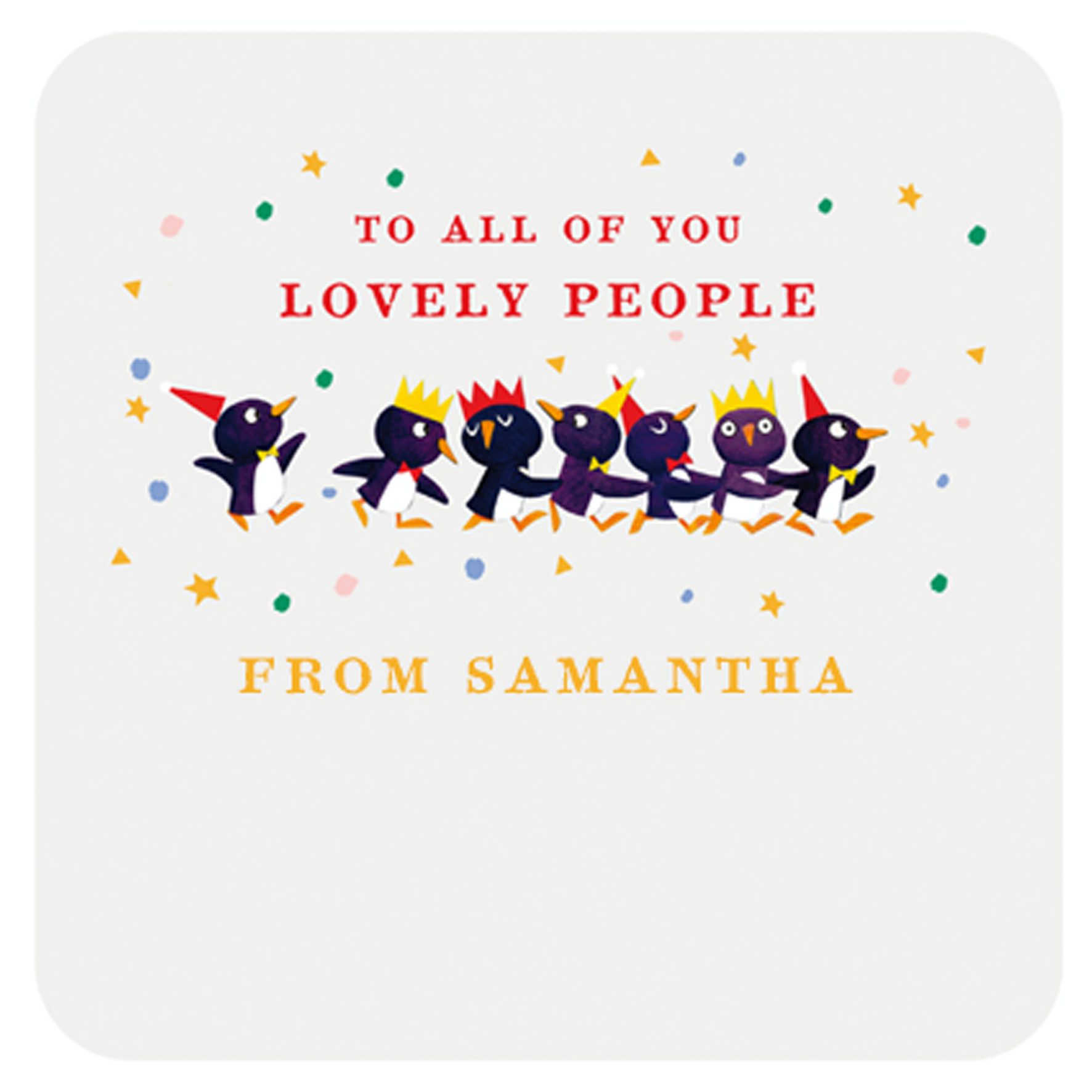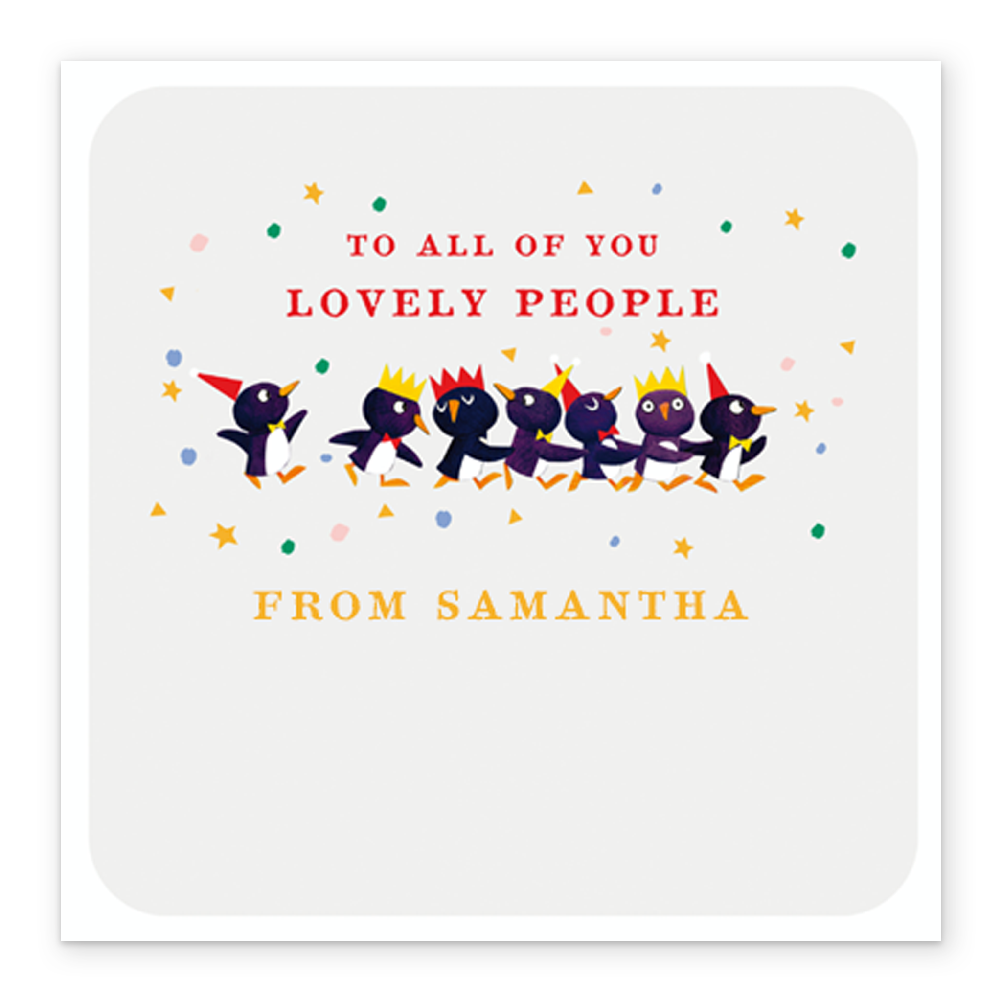 Show them you care with a personalised cute Christmas to all of you family card from Hallmark. Our greetings cards are printed on premium quality, FSC®-certified card & delivered nationwide. This card is available as standard 12cm by 12cm and large 15cm by 15cm.