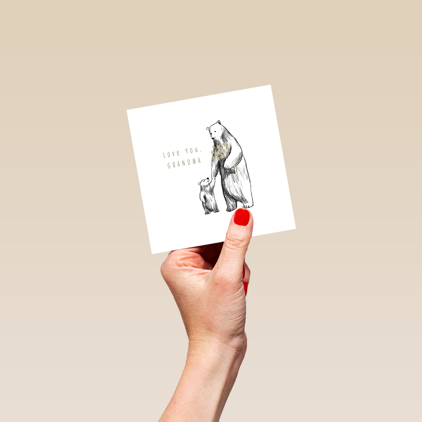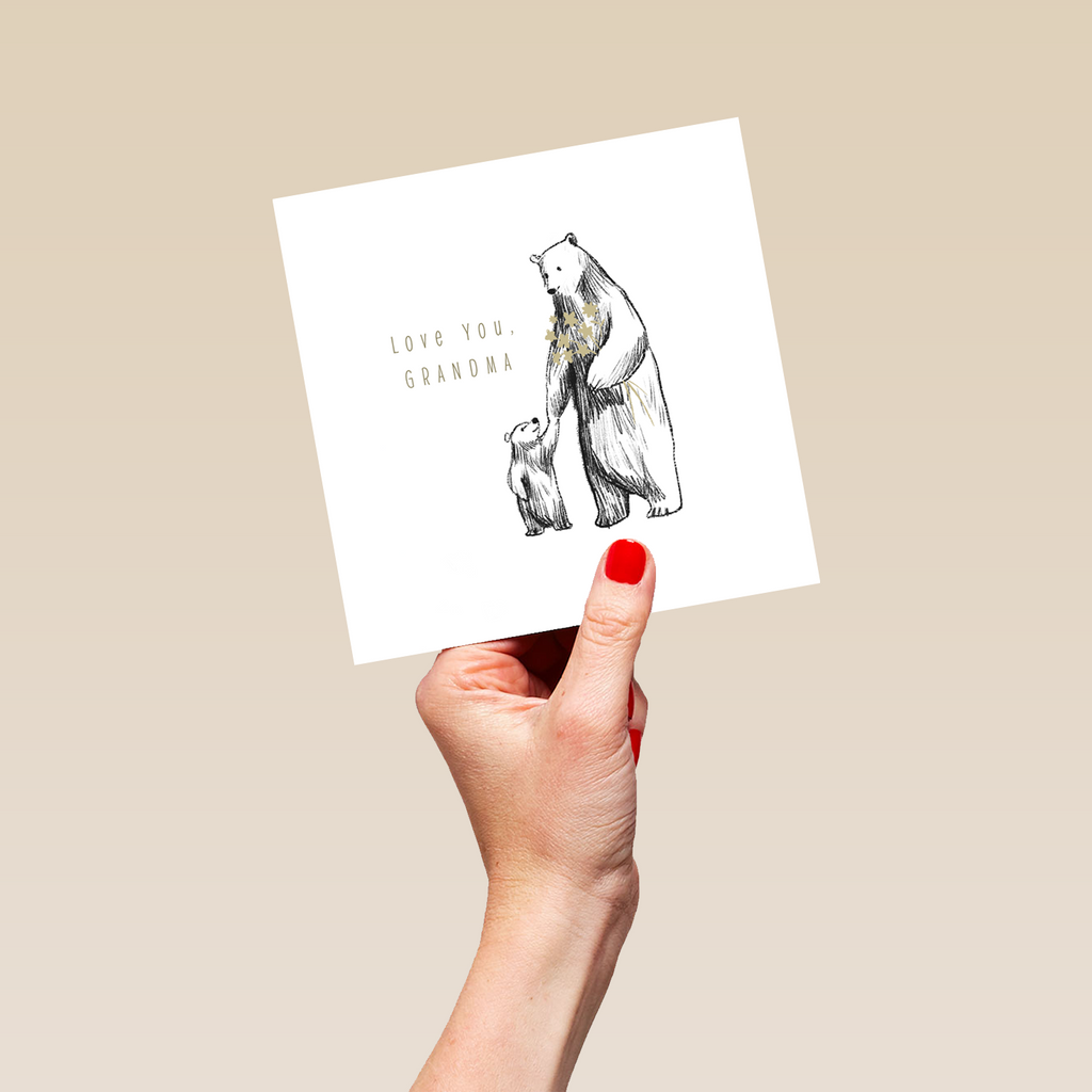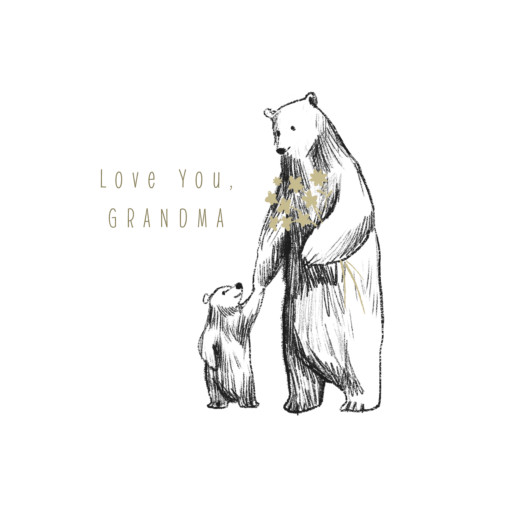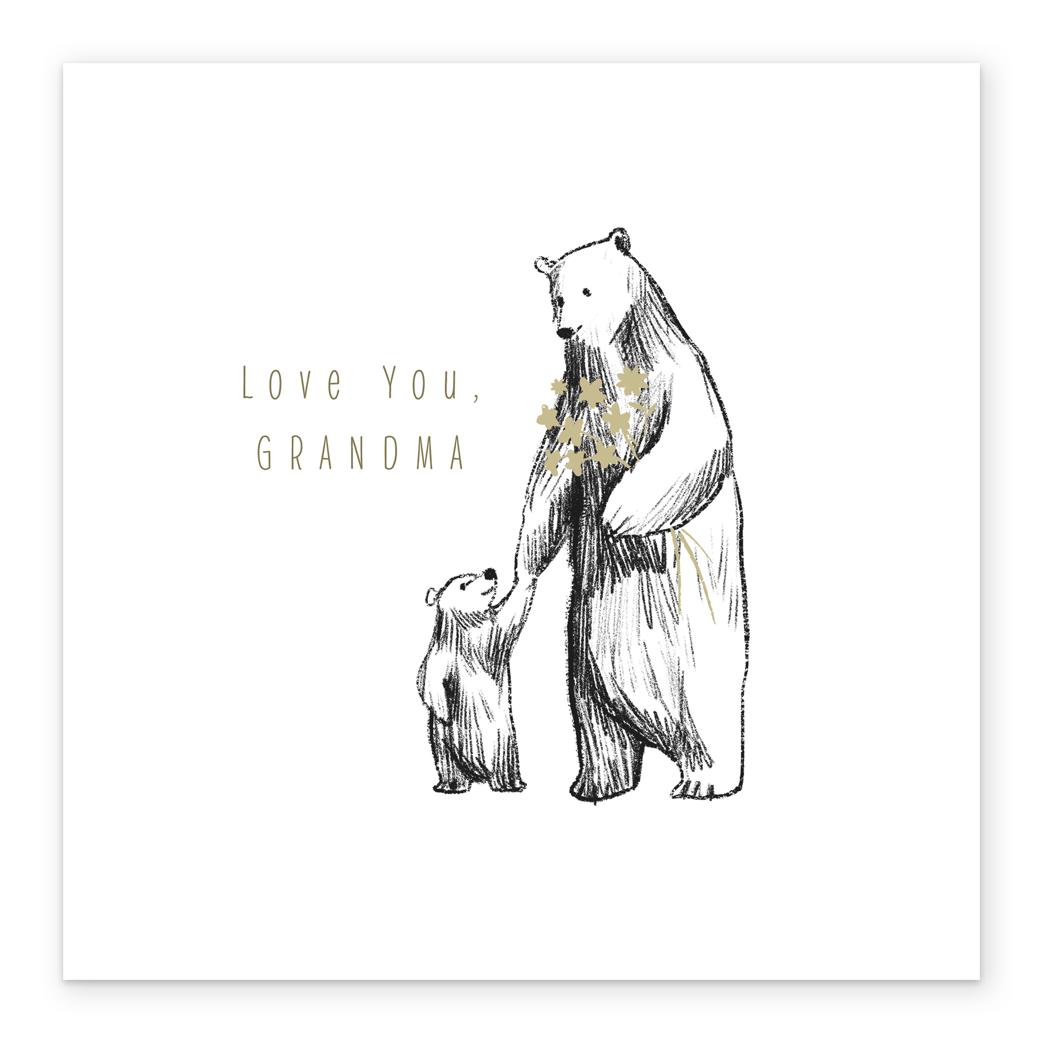 Printed on premium-quality board, this card features a loving illustration of a Mother bear with her baby cub, with the message 'Love You, Grandma', space to personalise your message, and comes complete with a co-ordinating white envelope.