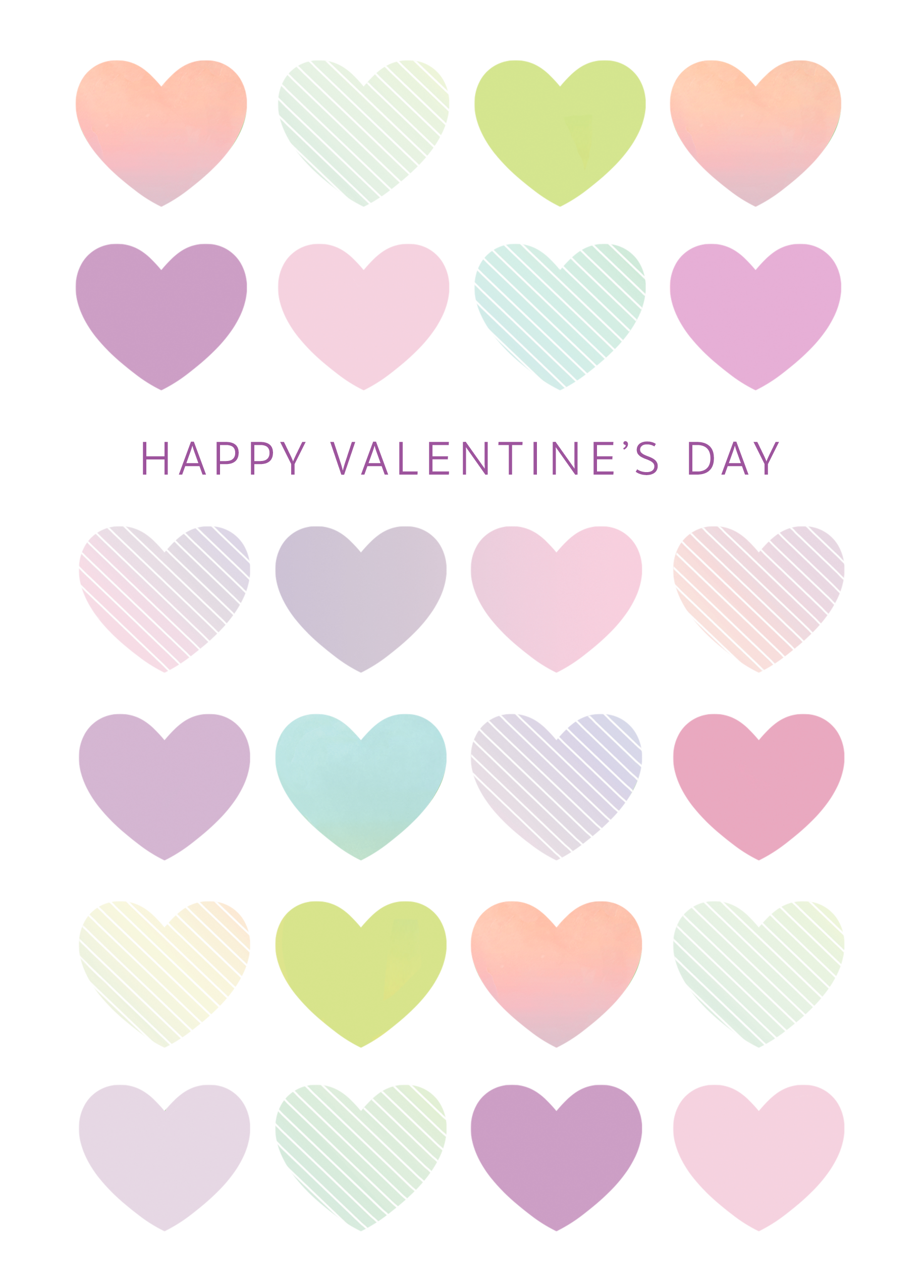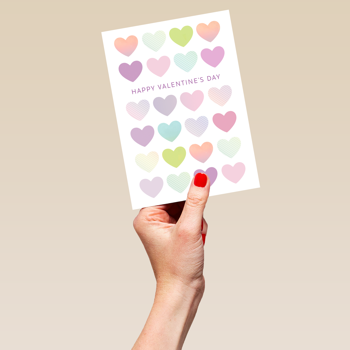 Personalised Editable Pastel Hearts Valentine's Day Card