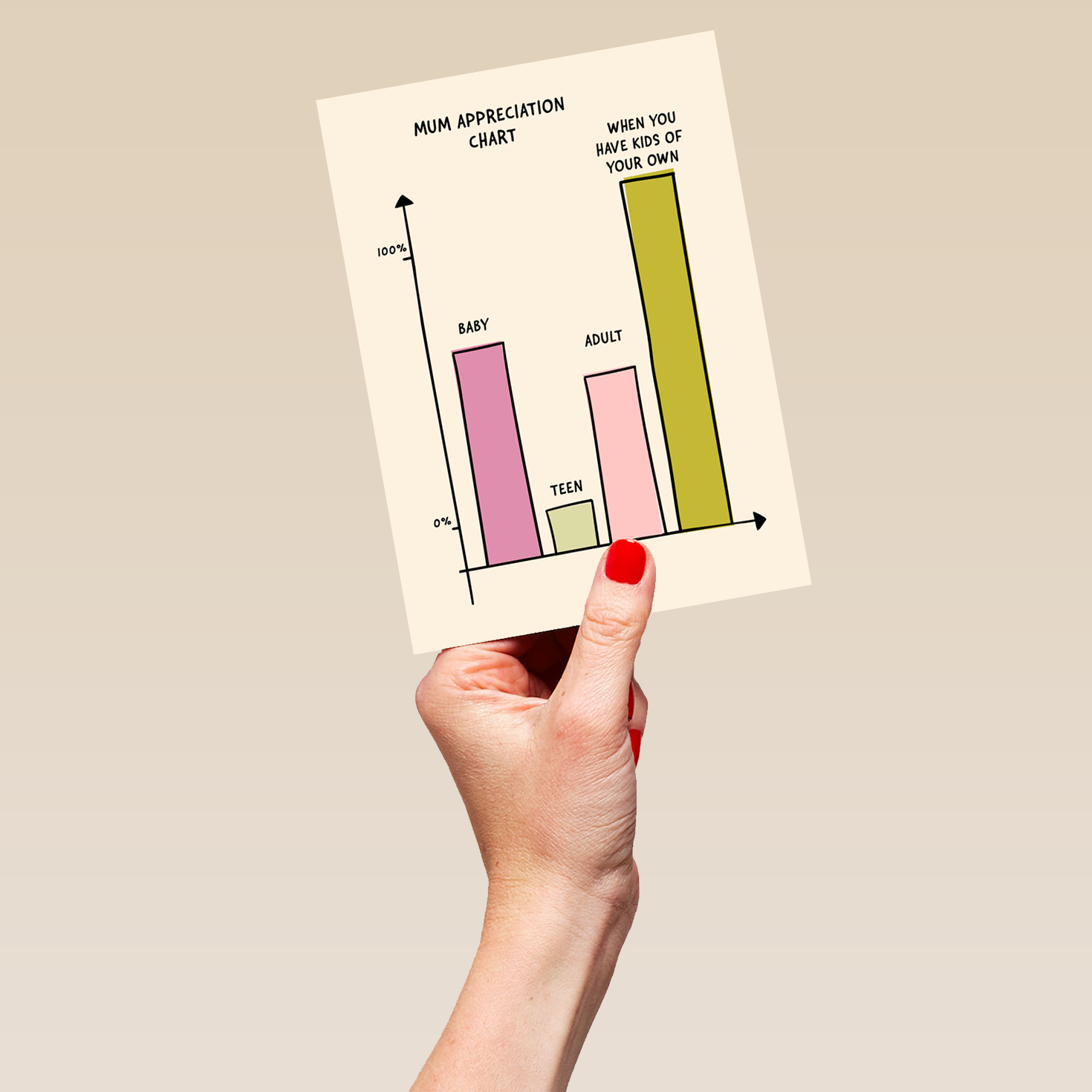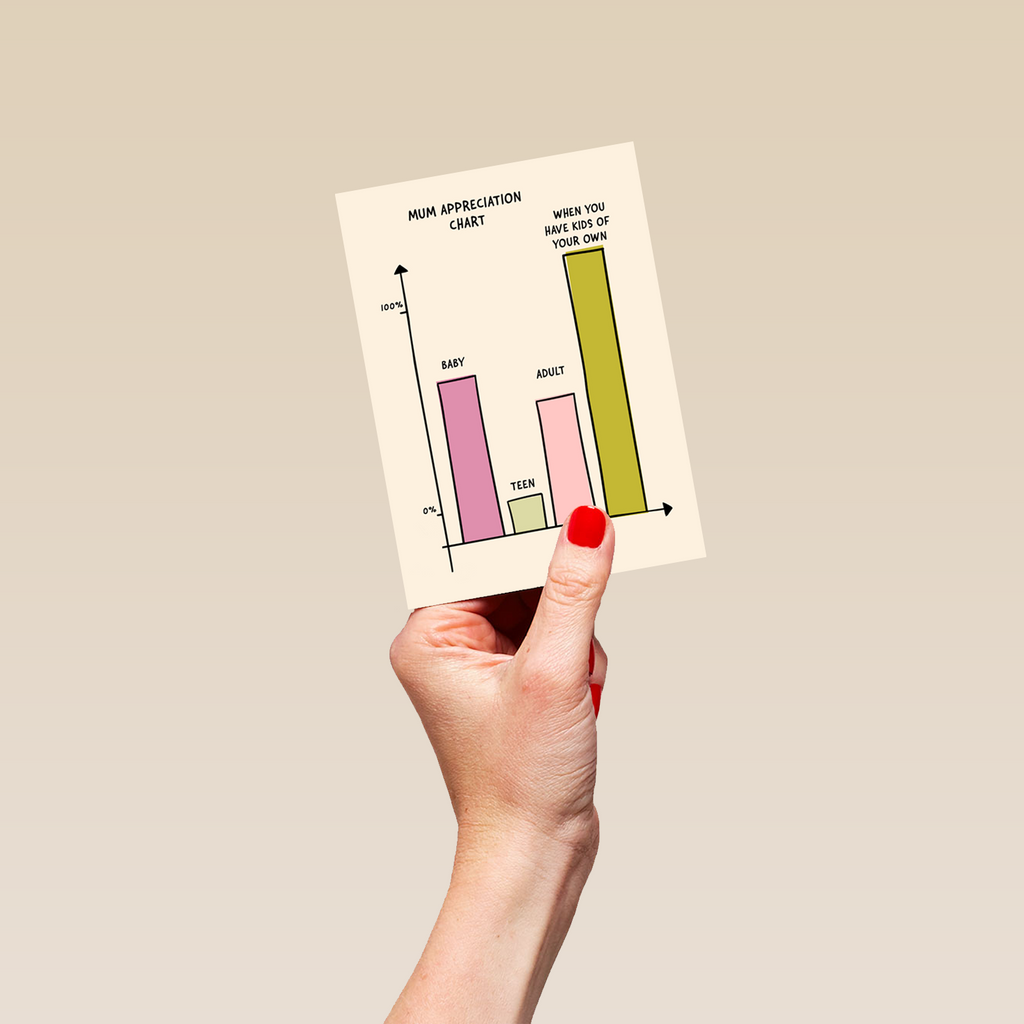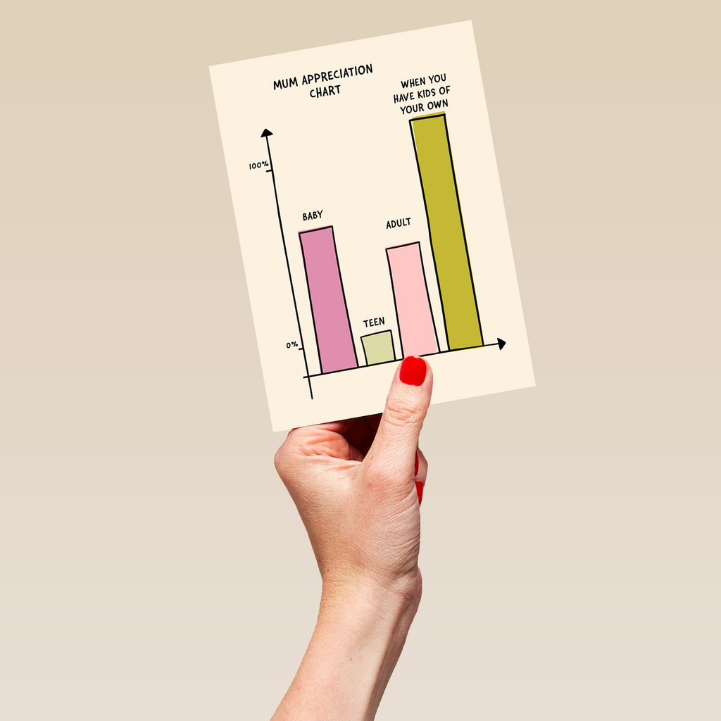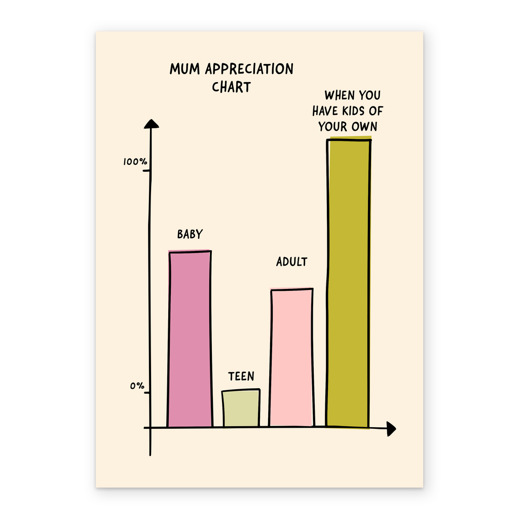 Printed on premium-quality board, this card features a funny Mum Appreciation Chart design, and comes complete with a co-ordinating white envelope.