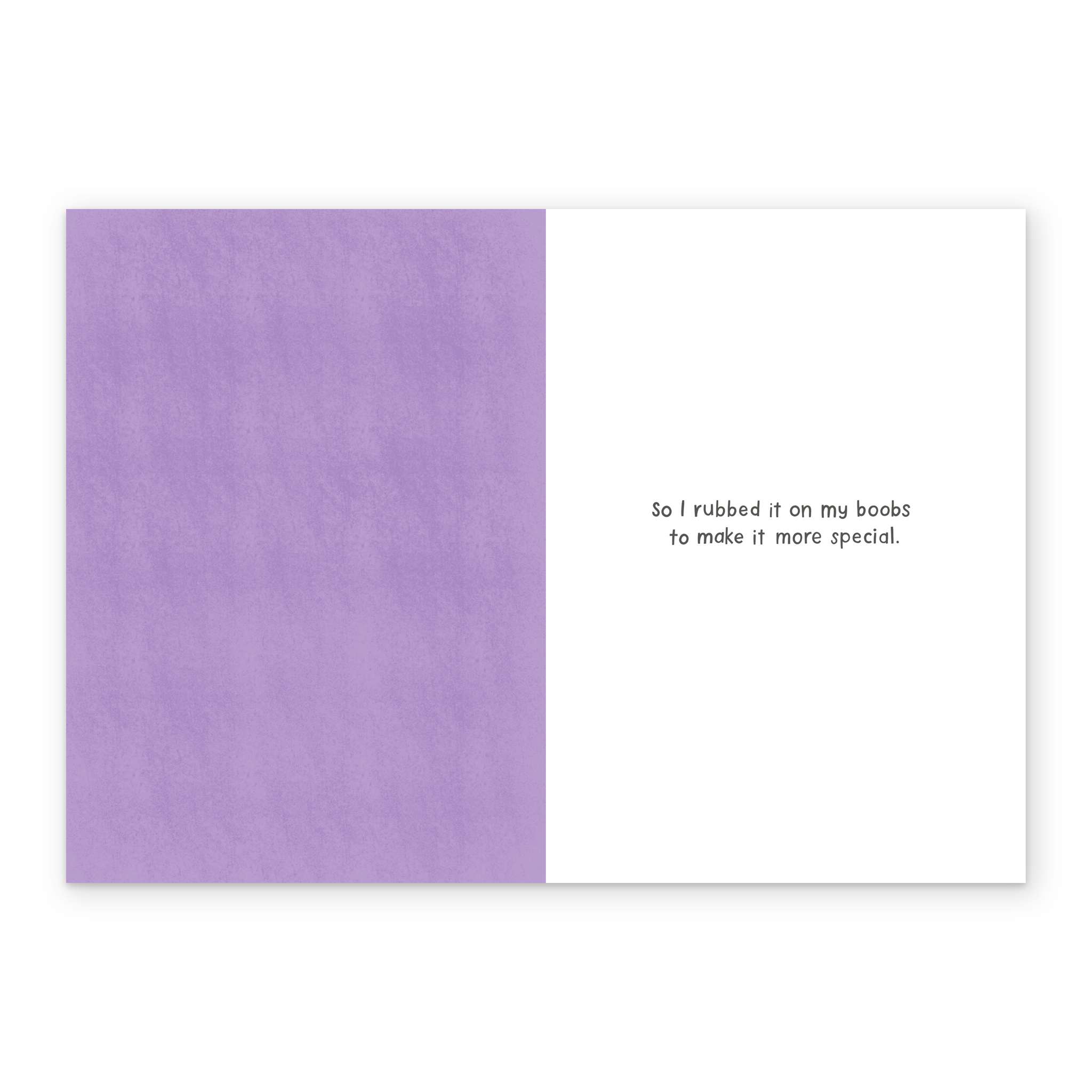 Message inside reads: So I rubbed it on my boobs to make it more special
