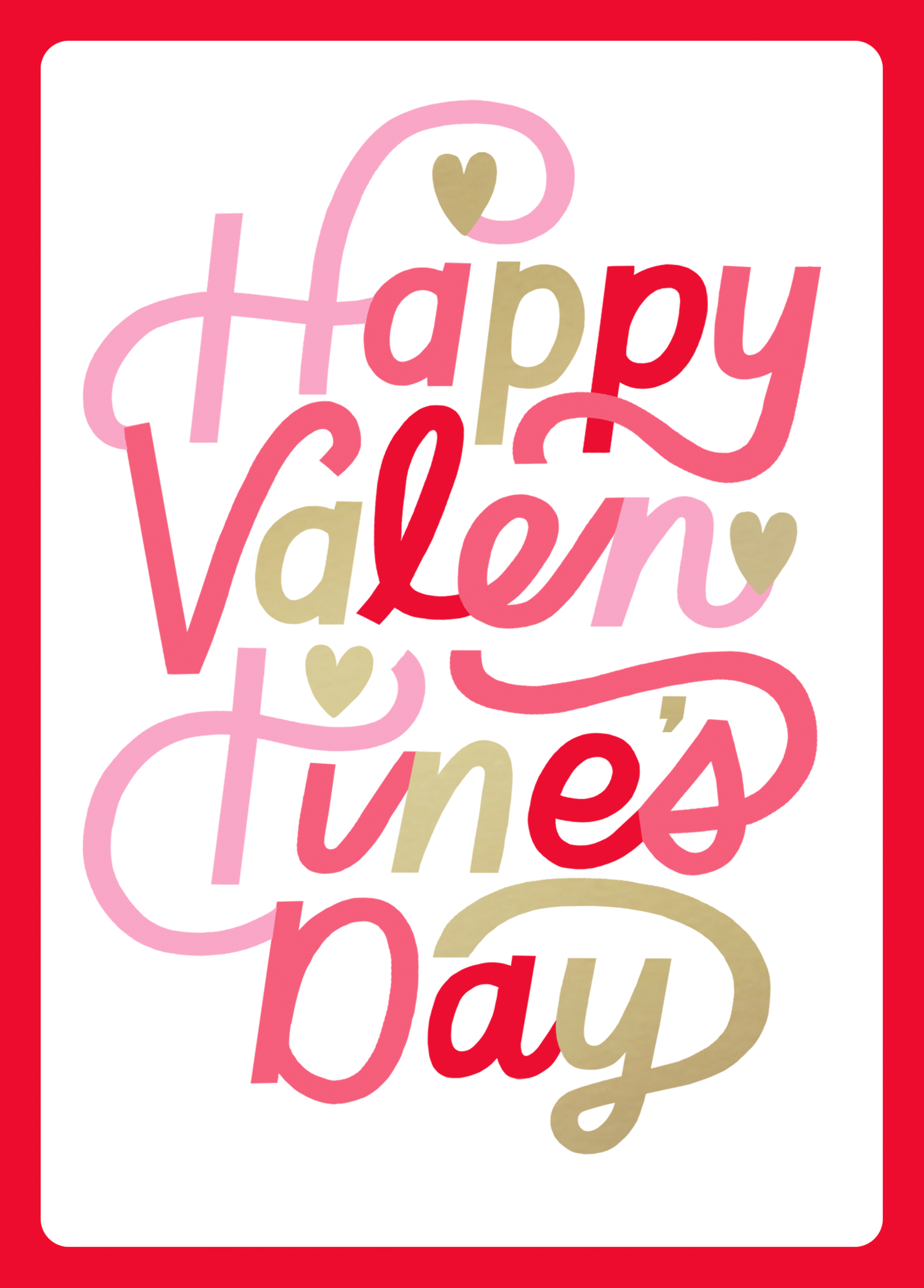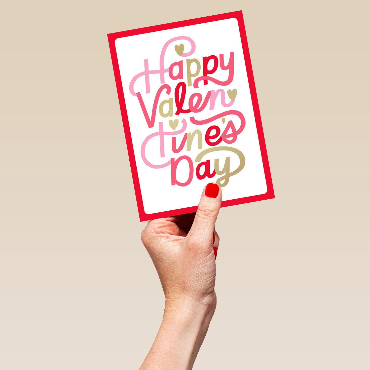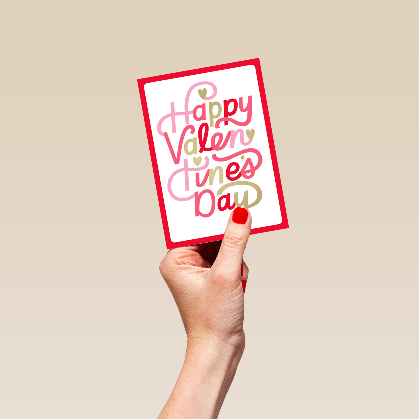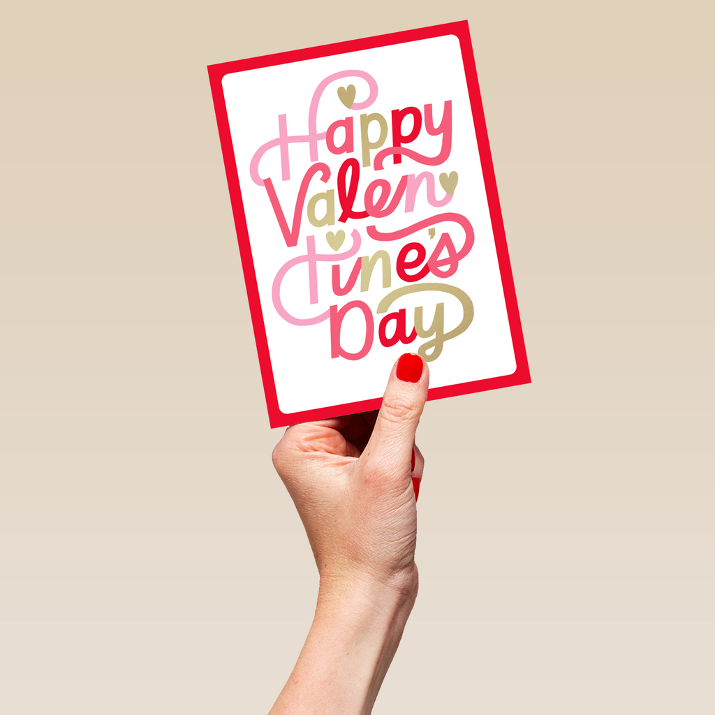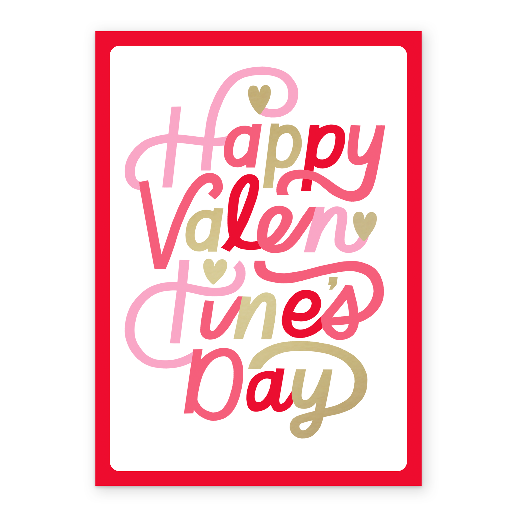 Printed on premium-quality board, this card features fun stylised lettering with a red border, with the message 'Happy Valentine's Day', and comes complete with a co-ordinating white envelope.