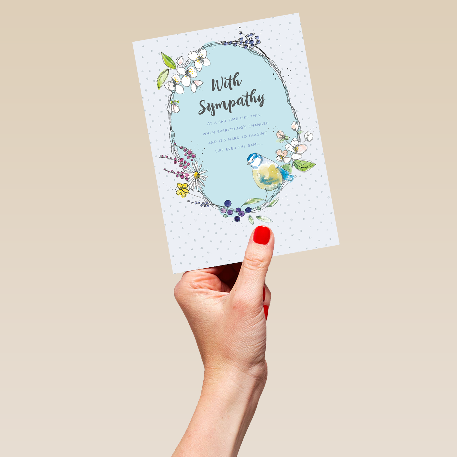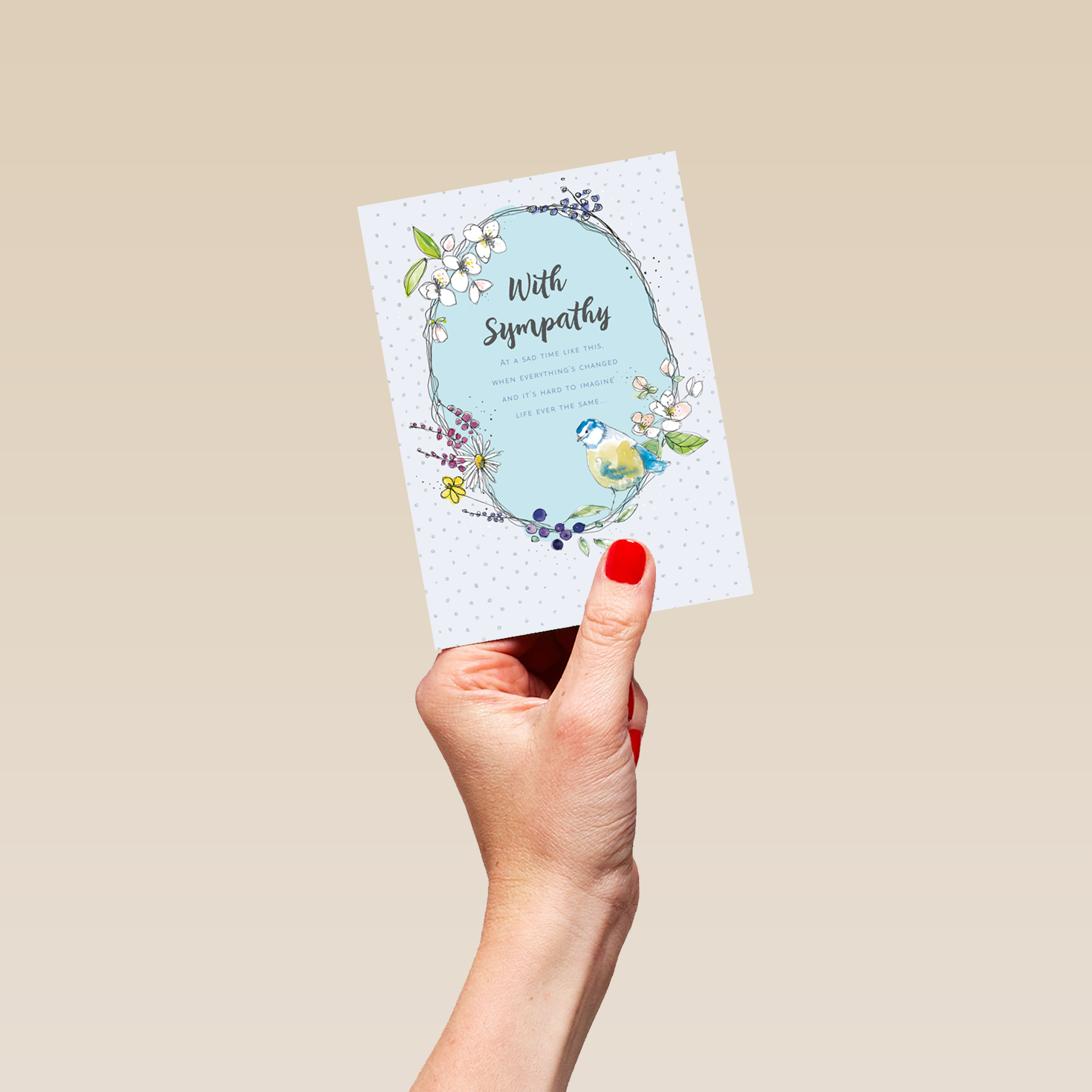Show them you care with a personalised flowers & birds sympathy card from Hallmark. Our sympathy cards are printed on premium quality, FSC®-certified card & delivered nationwide. This card is available as standard 12cm by 16.7cm and large 15.5cm by 21.6cm.