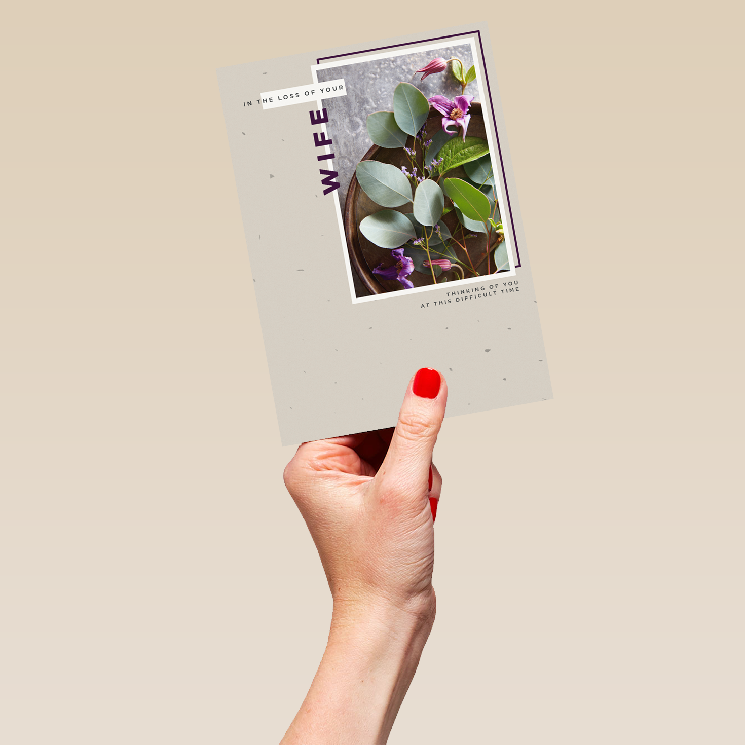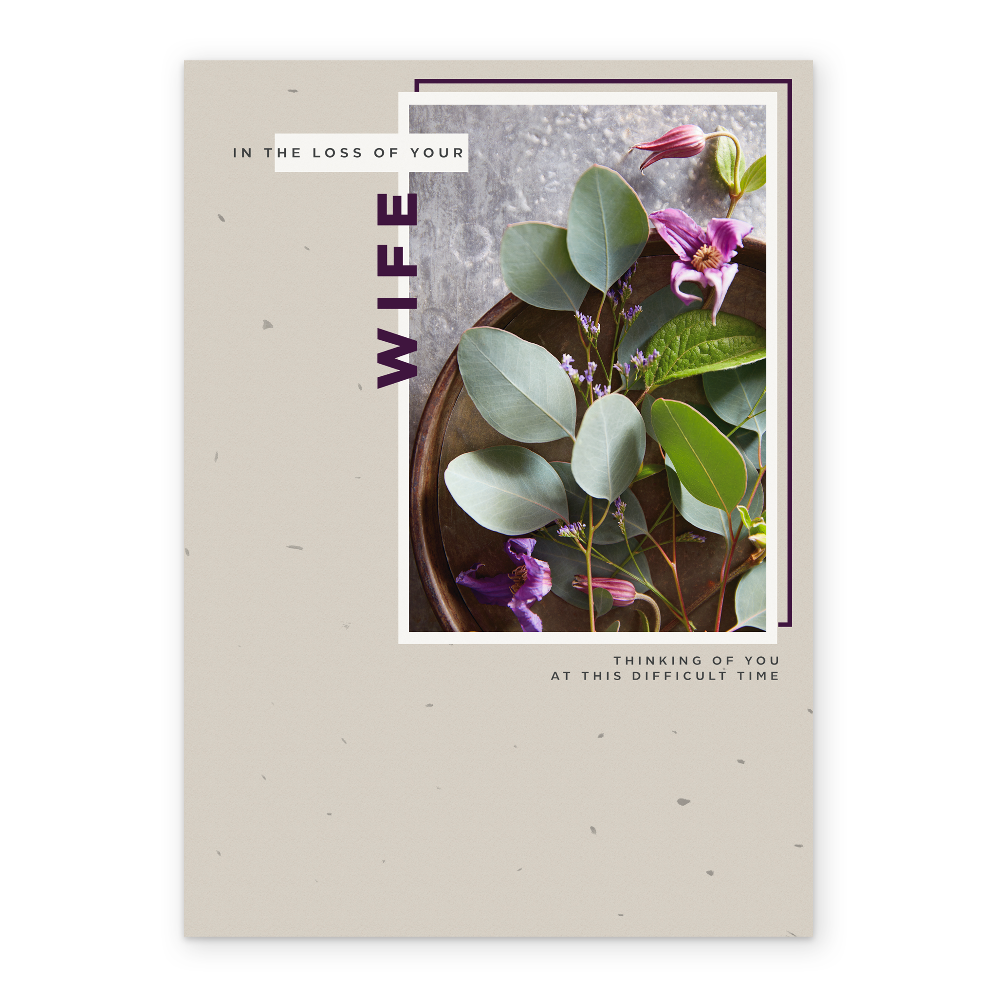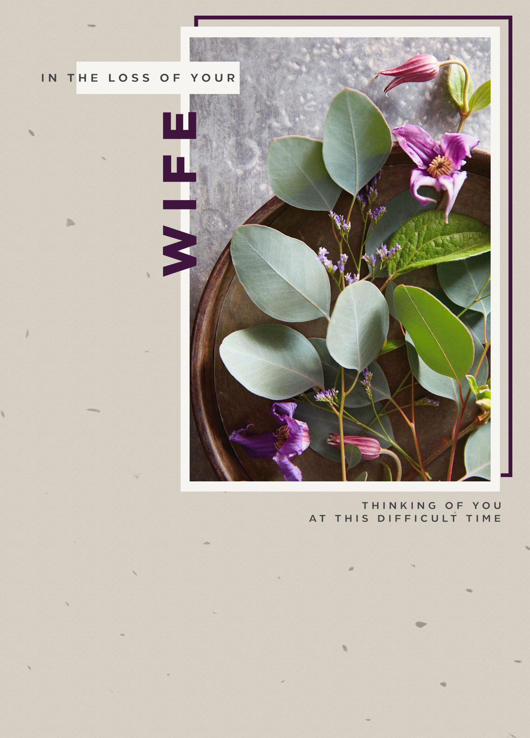 Show them you care with a personalised sympathy card for loss of wife from Hallmark. Our sympathy cards are printed on premium quality, FSC®-certified card & delivered nationwide. This card is available as standard 12cm by 16.7cm and large 15.5cm by 21.6cm.