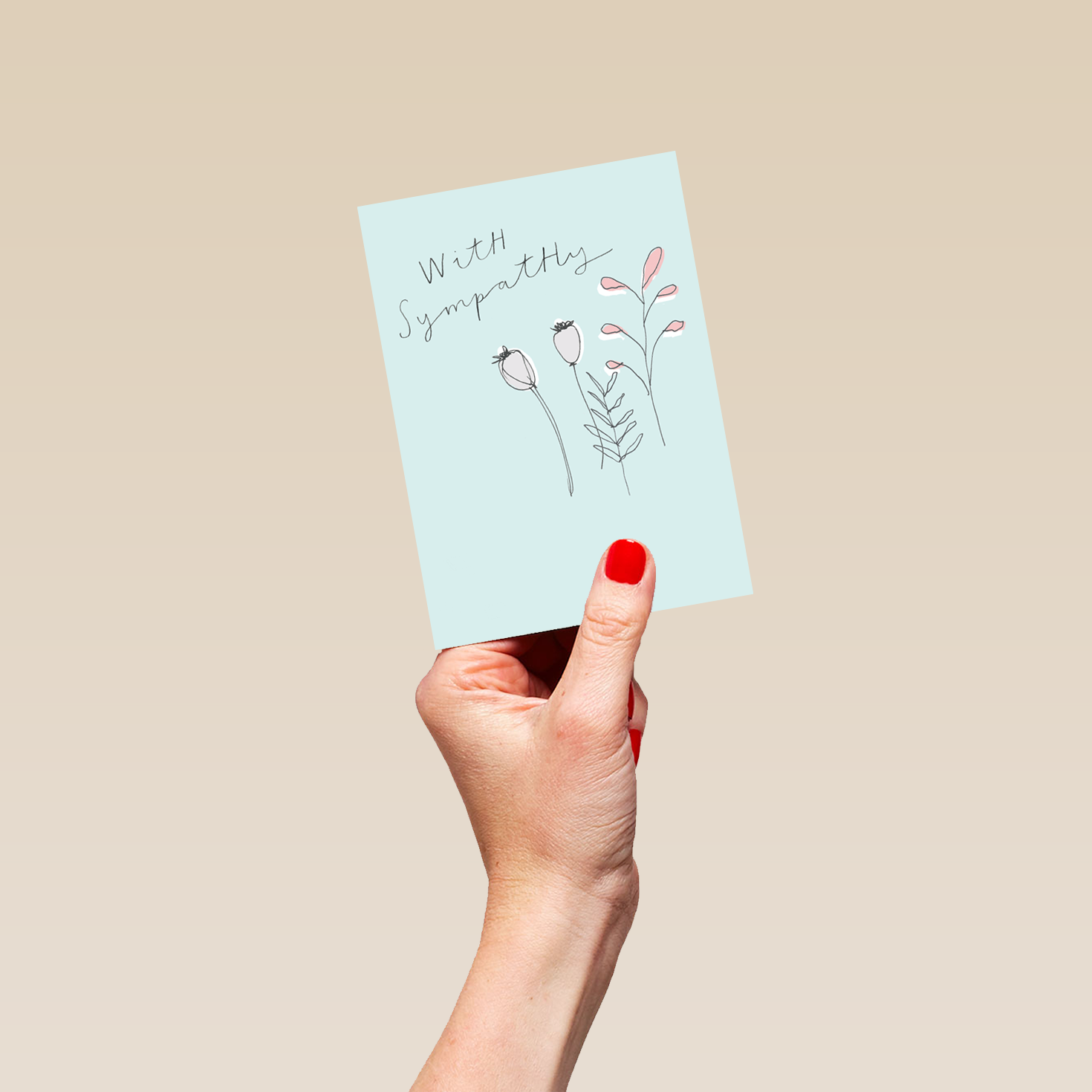 Show them you care with a personalised with sympathy floral card from Hallmark. Our sympathy cards are printed on premium quality, FSC®-certified card & delivered nationwide. This card is available as standard 12cm by 16.7cm and large 15.5cm by 21.6cm.