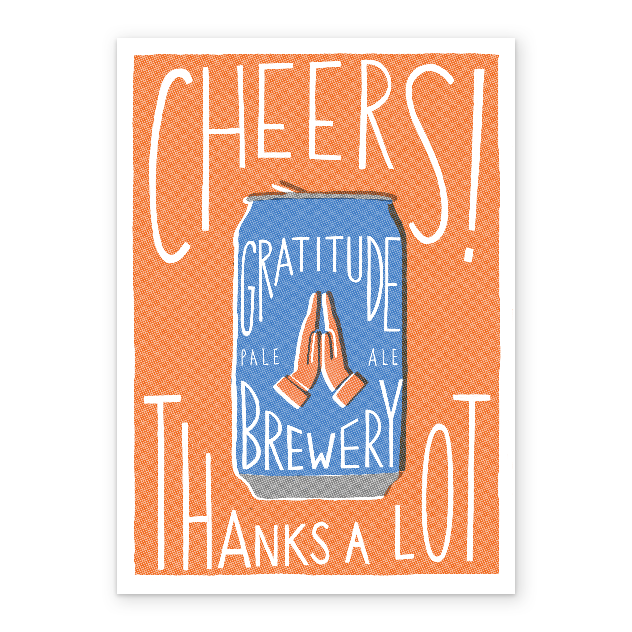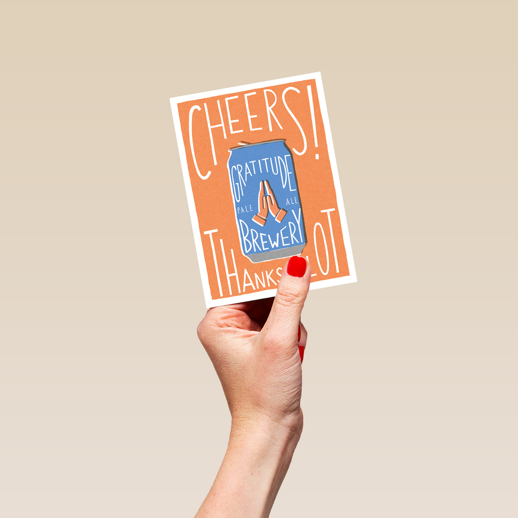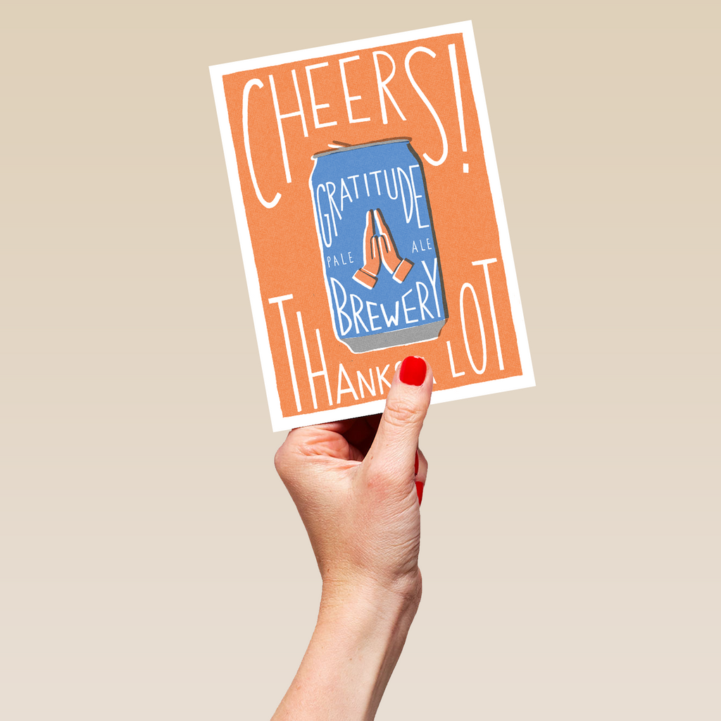 Printed on premium-quality board, this card features a retro and vintage print style with can of beer illustration, with the message 'Cheers! Thanks a lot', and comes complete with a co-ordinating white envelope.