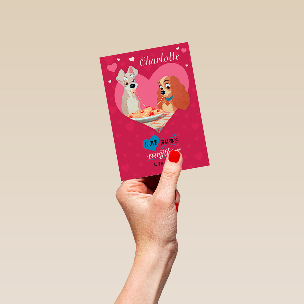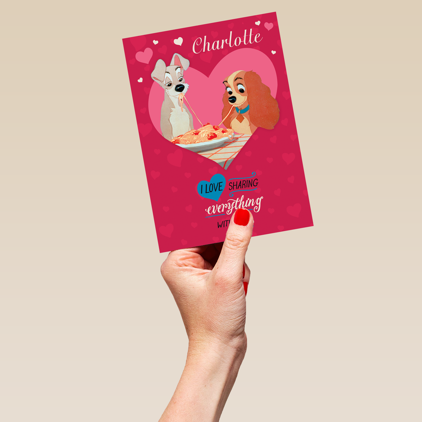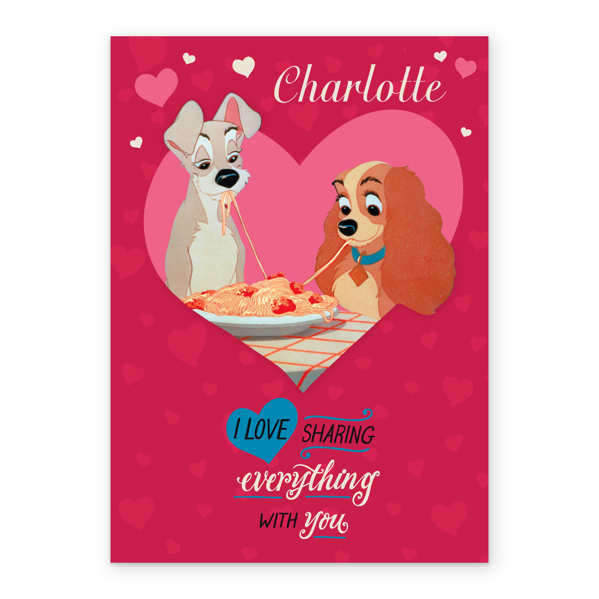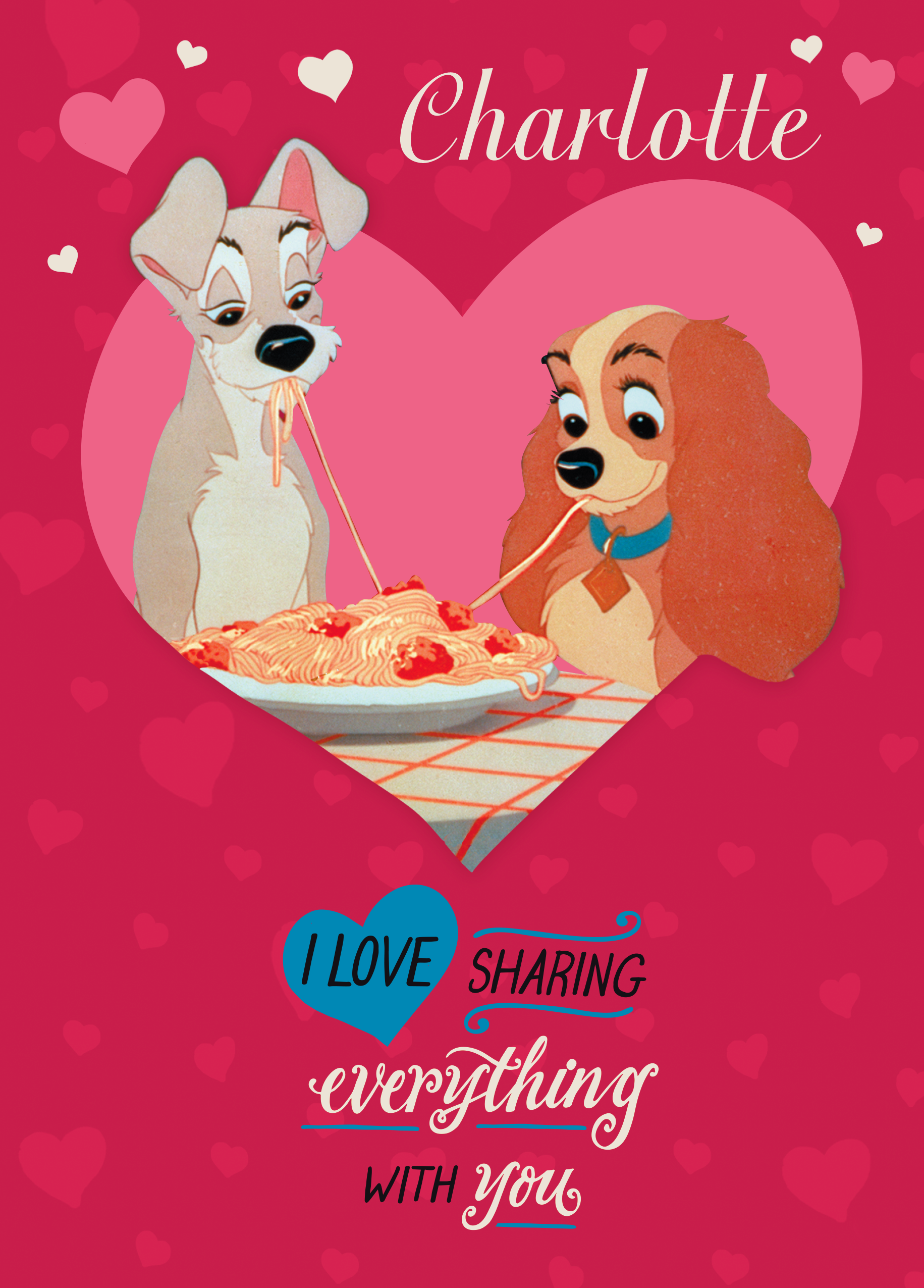Show them you care this Valentine's Day with a personalised Disney Lady And The Tramp card from Disney.
