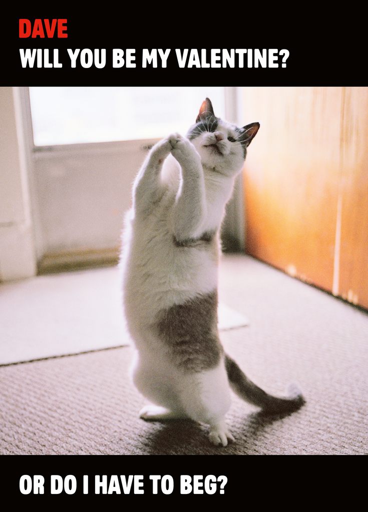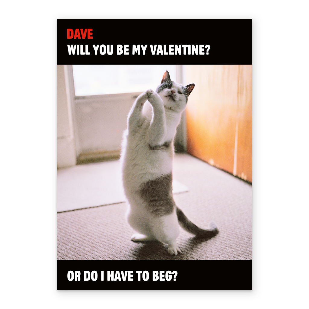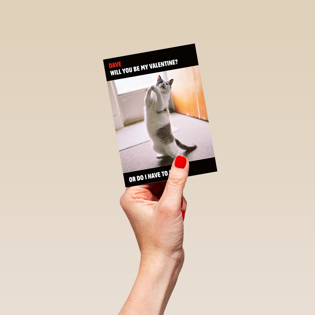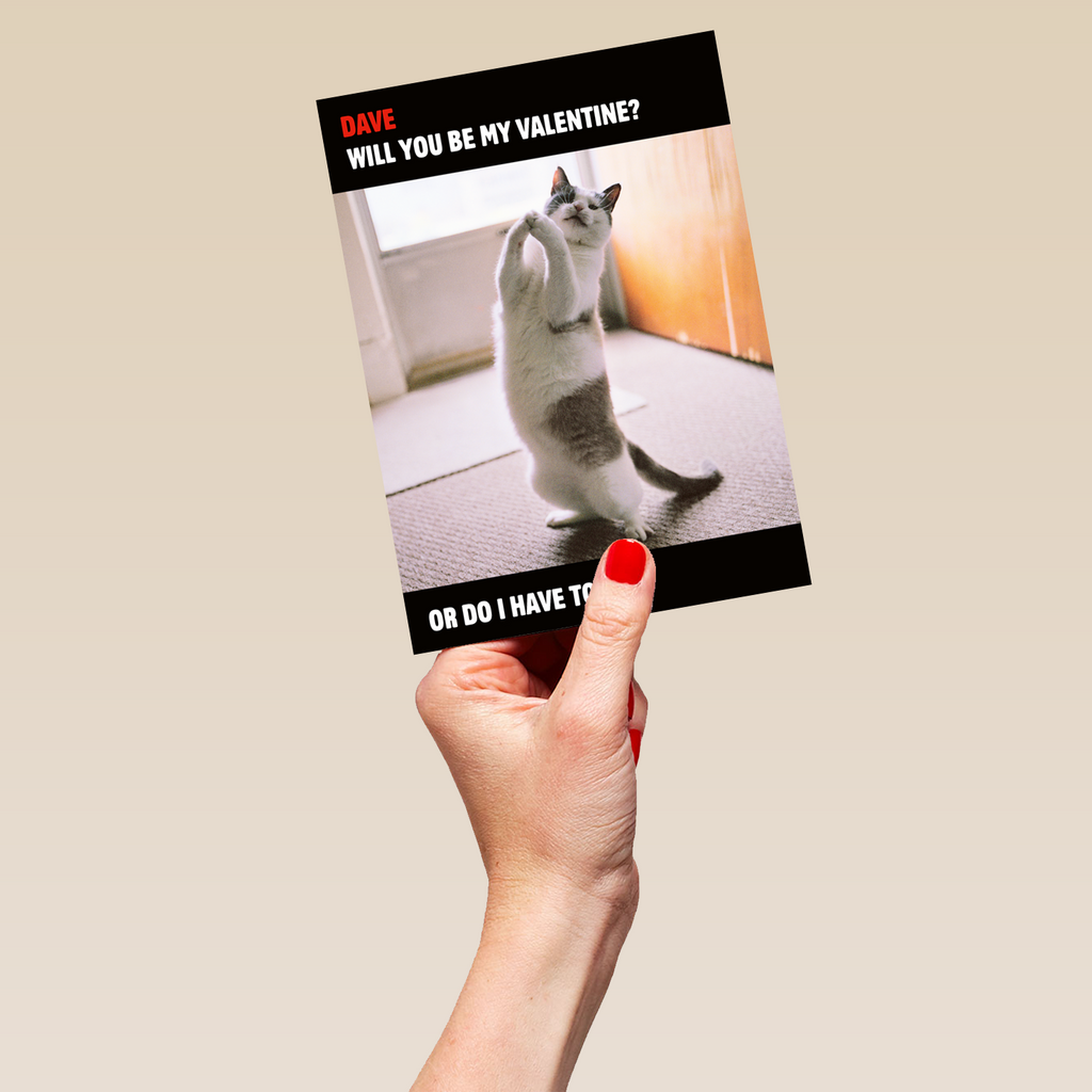 Show them you care this Valentine's Day with a personalised funny cute cat Valentine's day card.