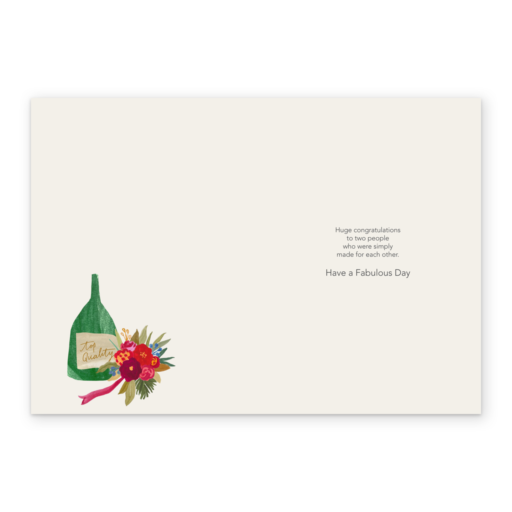Show them you care with a personalised classic bottle and bouquet wedding card from Hallmark. Our wedding cards are printed on premium quality, FSC®-certified card & delivered nationwide. This card is available as standard 12cm by 16.7cm and large 15.5cm by 21.6cm.