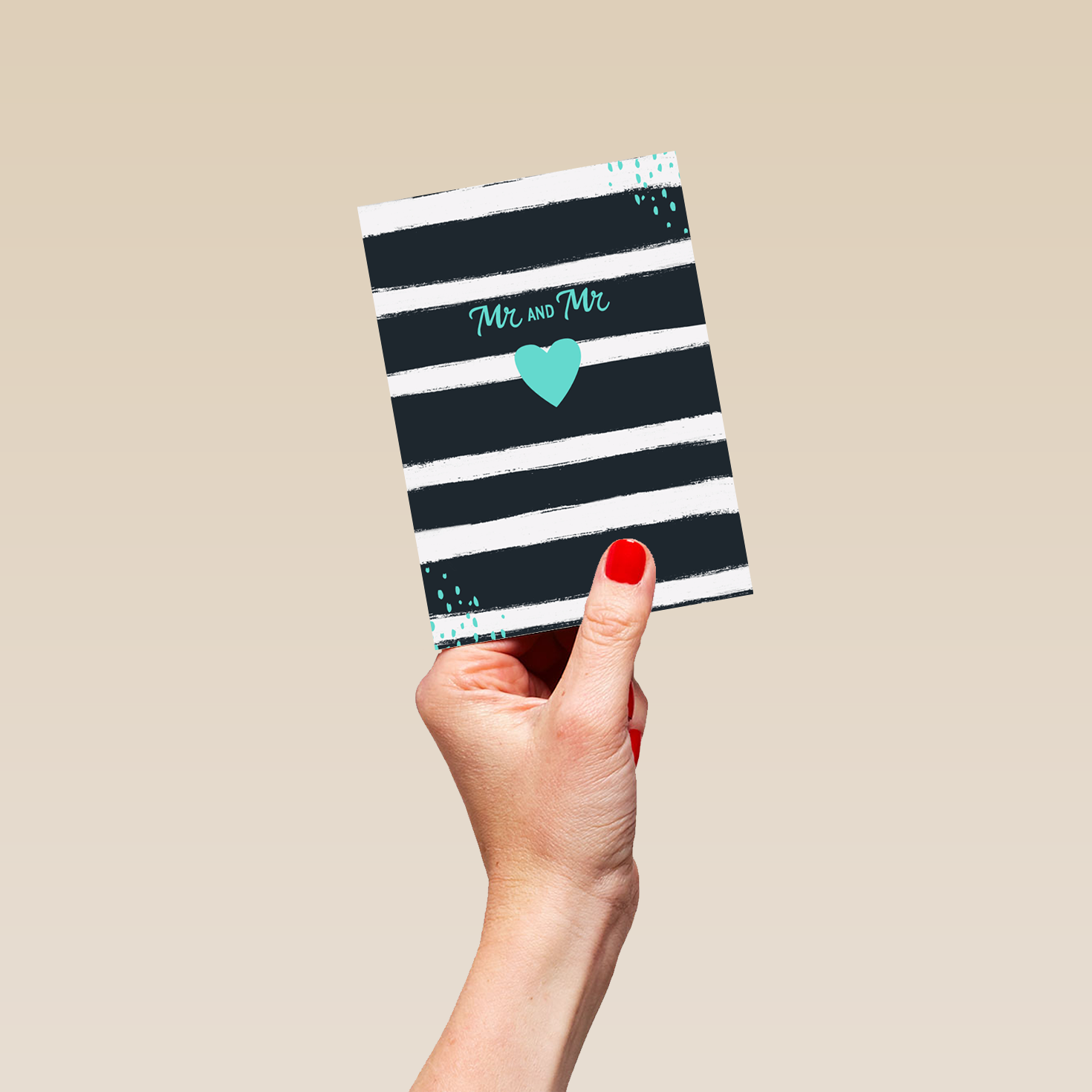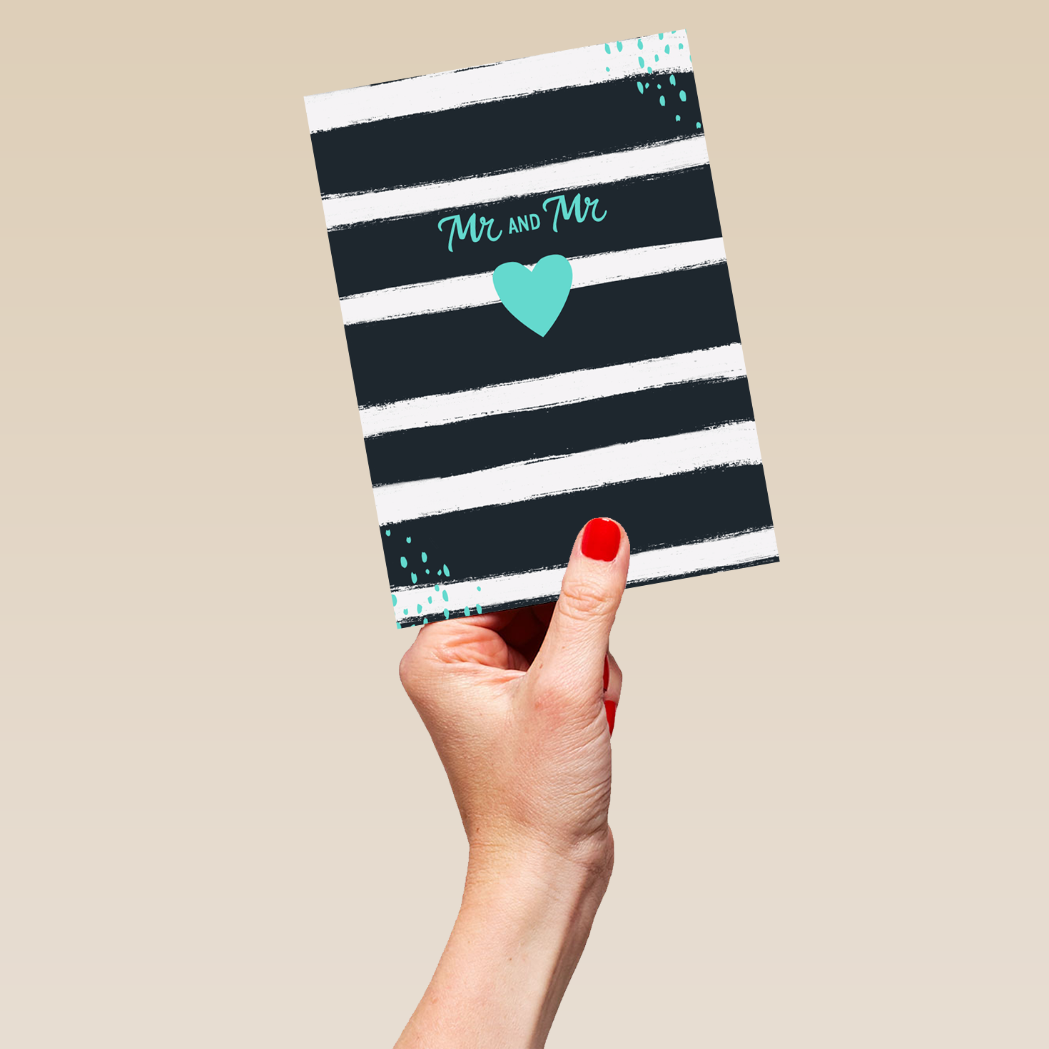 Show them you care with a personalised Mr & Mr wedding card from Hallmark. Our wedding cards are printed on premium quality, FSC®-certified card & delivered nationwide. This card is available as standard 12cm by 16.7cm and large 15.5cm by 21.6cm.