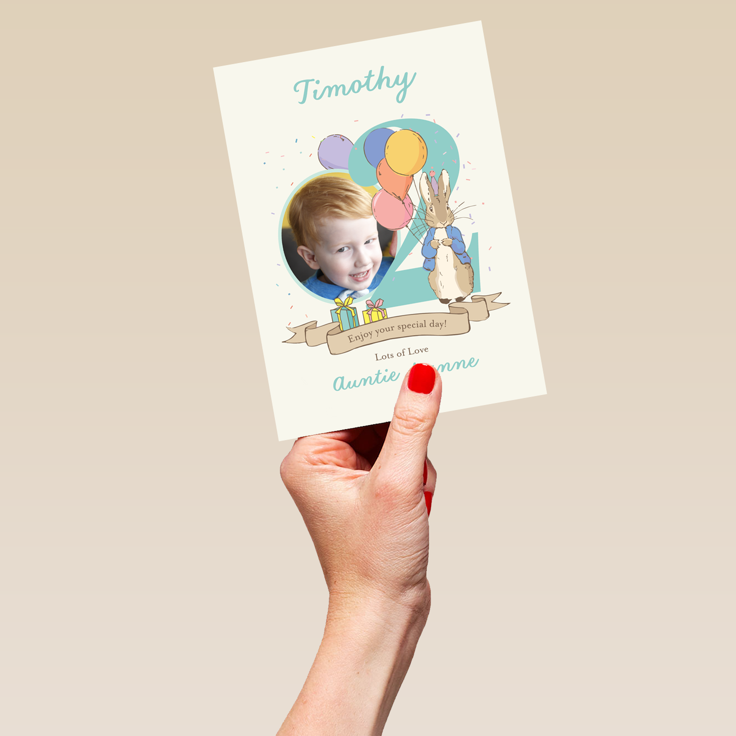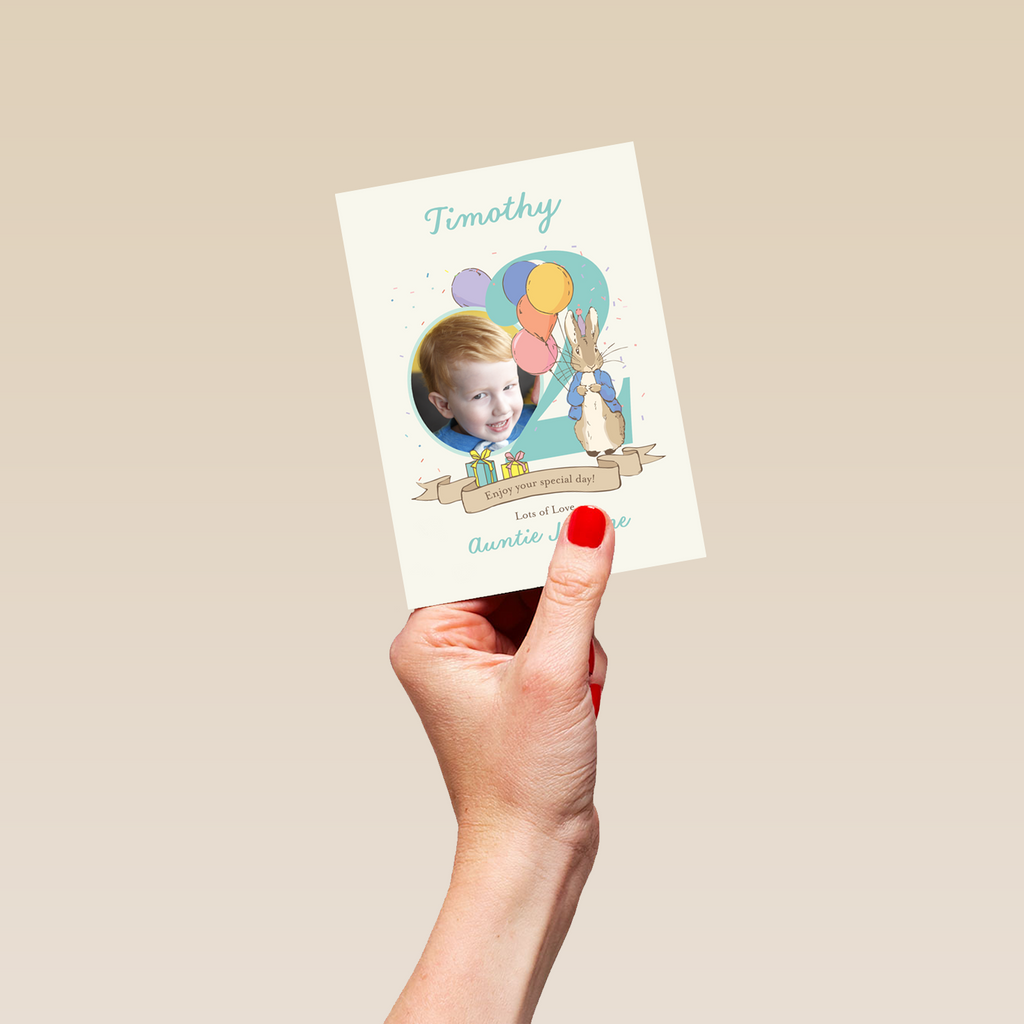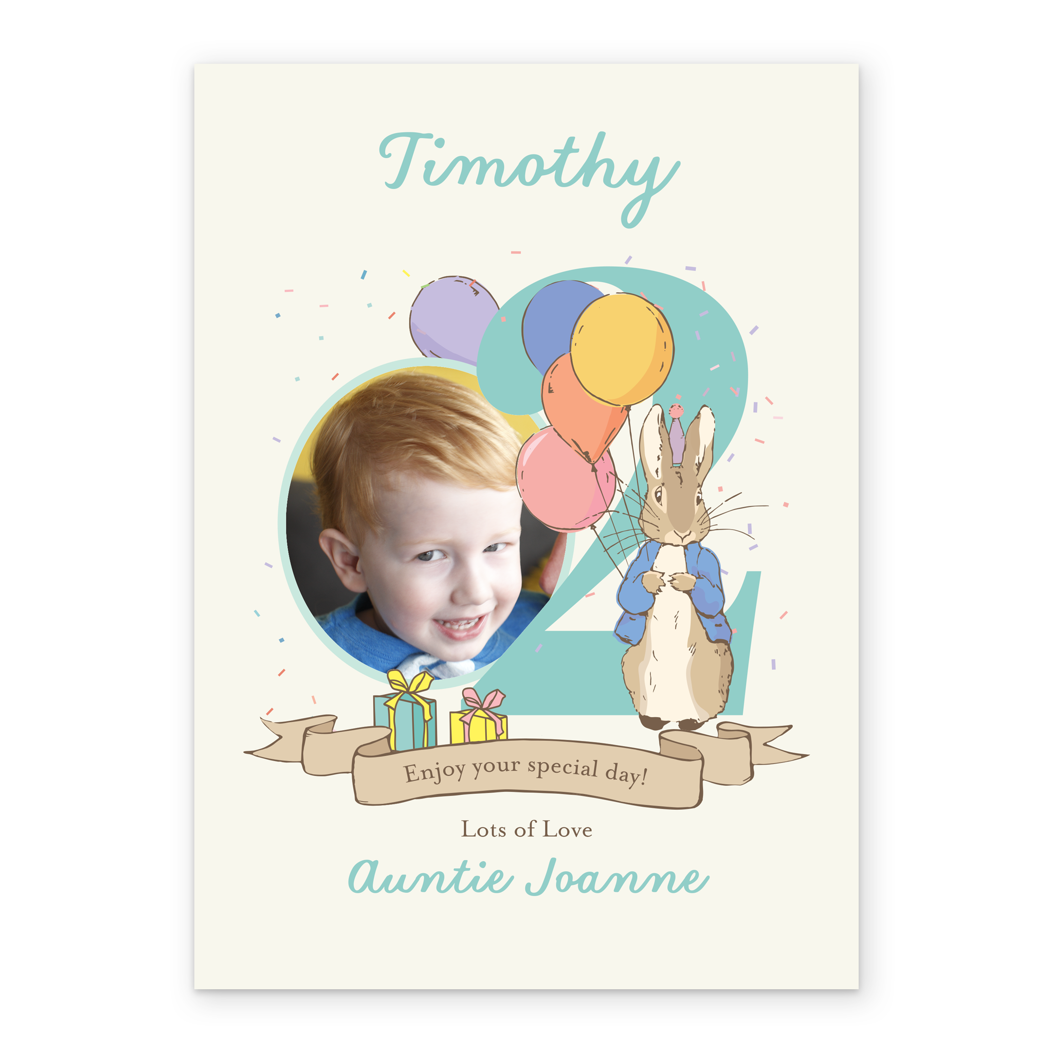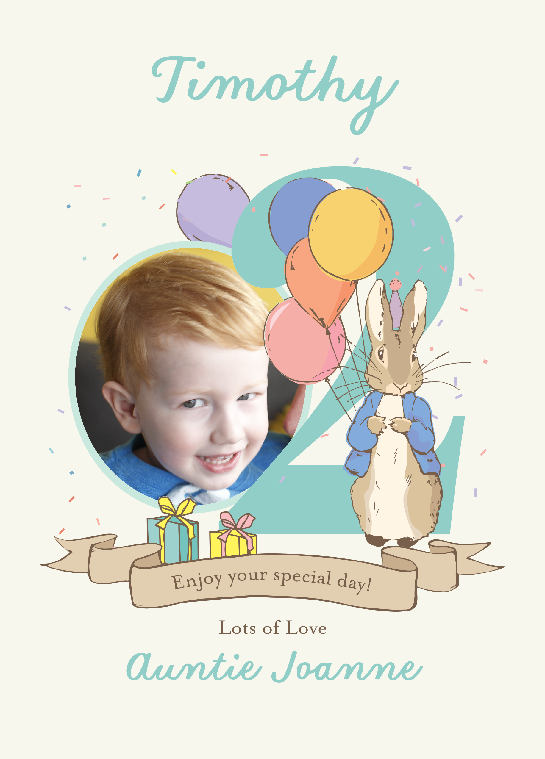 Personalised Photo Upload & Editable Peter Rabbit™ 2nd Birthday Card